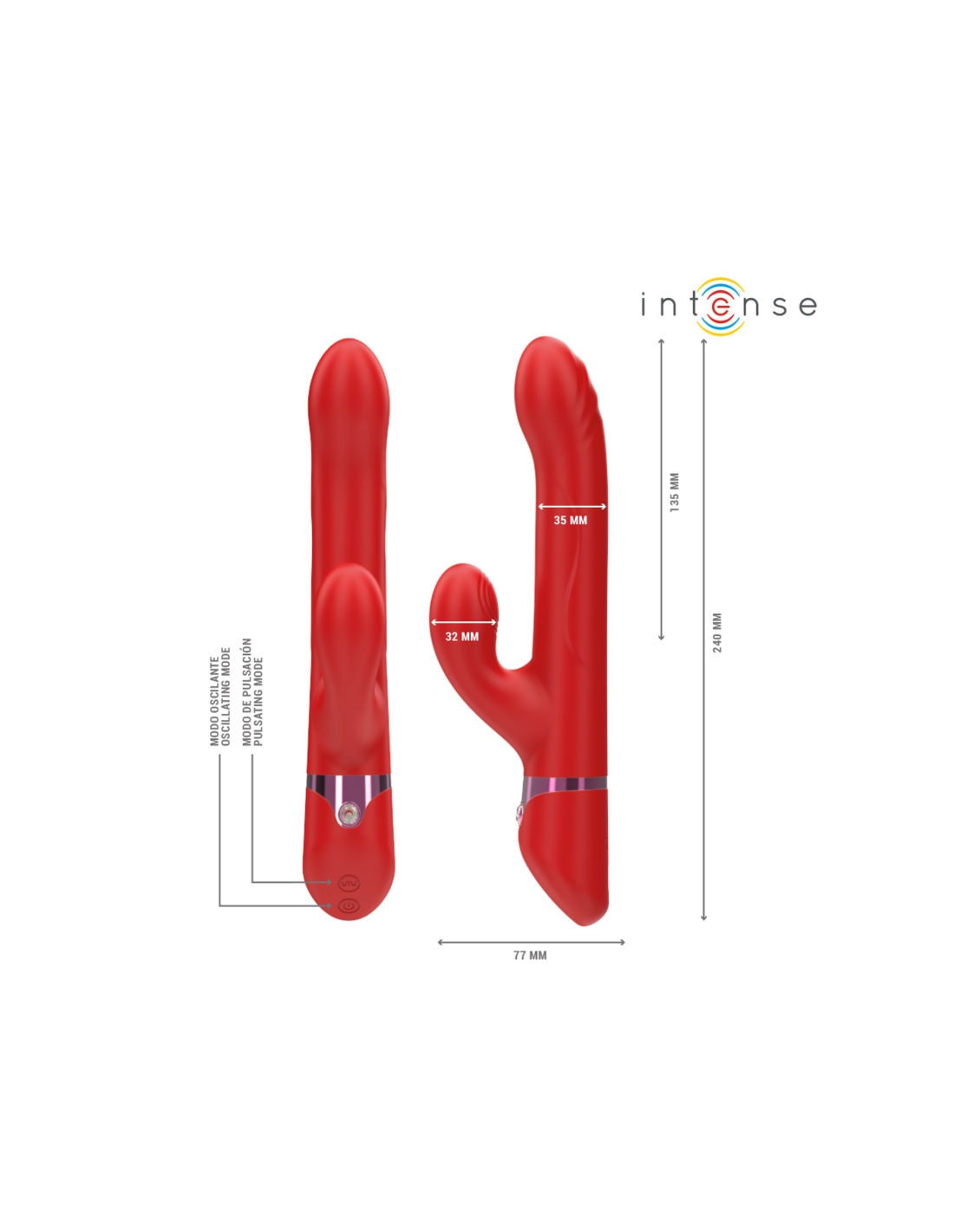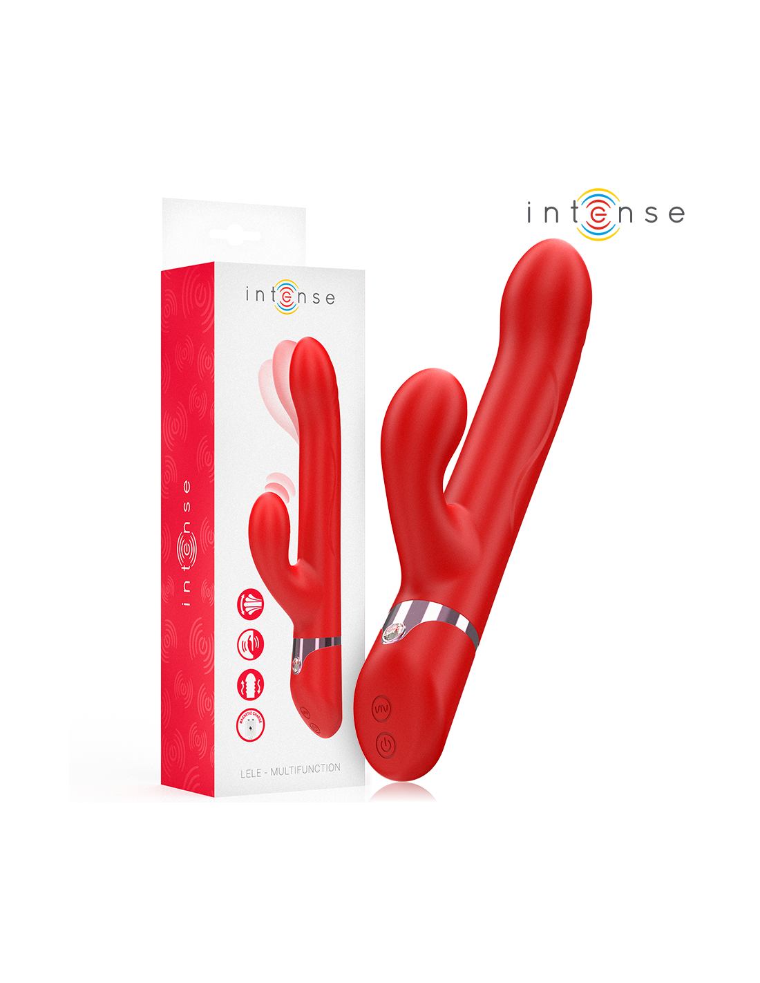 INTENSE - LELE DAUGIAFUNKCINIS VIBRATORIUS, SUKAMASIS, VIRBIAMAS IR STIMULIACINIS RAUDONAS