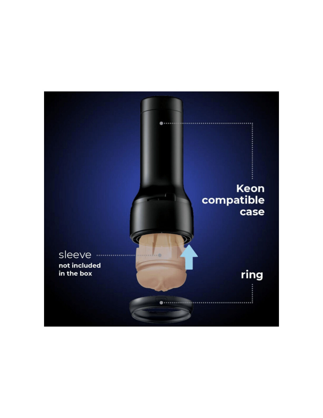 Su „Keon“ suderinamas „Feel Stroker“ dėklas ir tvirtinimo žiedas buvo sukurti taip, kad jūsų mėgstamiausios rankovės iš kai kurių populiariausių suaugusiųjų prekių ženklų būtų suderinamos su „Kiiroo“ „Keon“. Dėžutėje esantis žiedas laikys rankoves, kurios yra šiek tiek aukštesnės/ilgesnės nei „Feel Stroker“ rankovės.