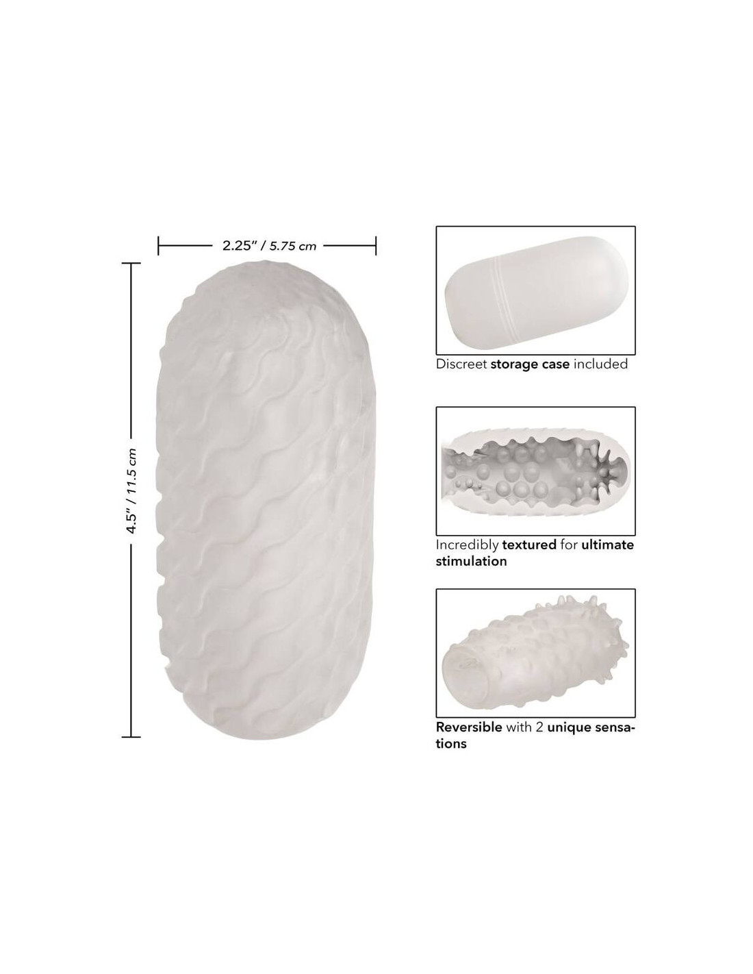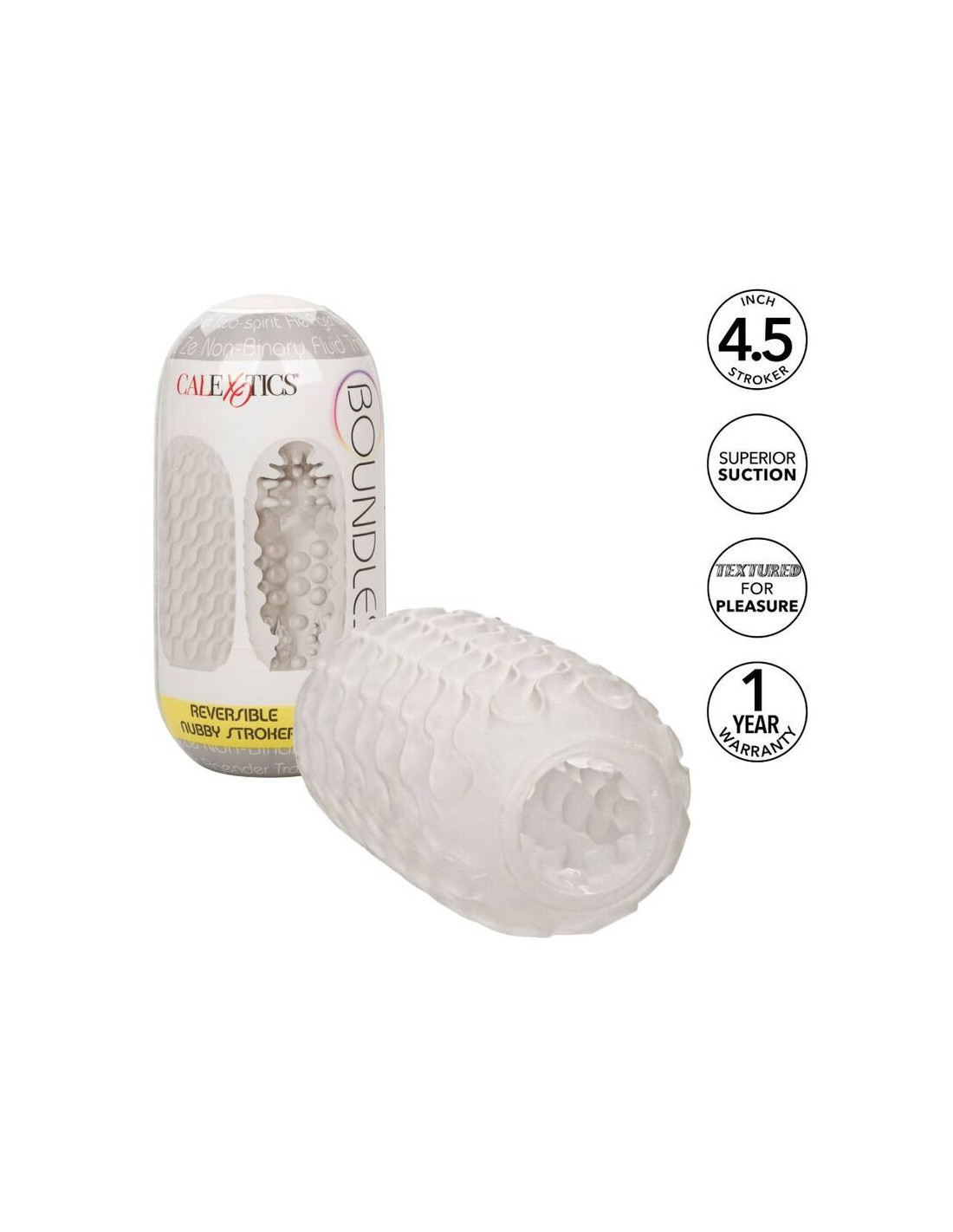 Nesibaigiantis malonumas – jūsų rankose su neįtikėtinu „Boundless Reversible Nubby Stroker“. Šis aukščiausios kokybės glostytojas lepina jūsų malonumą grįžtama tekstūruota stimuliacija, uždaru galu ir patogiu dėklu. Erzinkite ir džiuginkite unikaliu grįžtamu dizainu, įskaitant minkštą banguotą paviršių ir erzinantį gumbuotą raštą, kuris suteikia unikalius glostymo pojūčius. Laukite sprogstamojo malonumo patirties, o uždaras galas užtikrina puikų siurbimą. Nesvarbu, ar mėgaujatės namuose, ar bet kur kitur, kur jus nuveš malonumas, kompaktiškas 4,5–11,5 cm dizainas ir patogus dėklas paverčia šį erzinantį kelionių kompanioną, kurio trokštate. Aukščiausios kokybės TPR yra bekvapis, be ftalatų ir nereikalauja priežiūros, kad jūsų jautriausios vietos būtų laimingos ir sveikos.