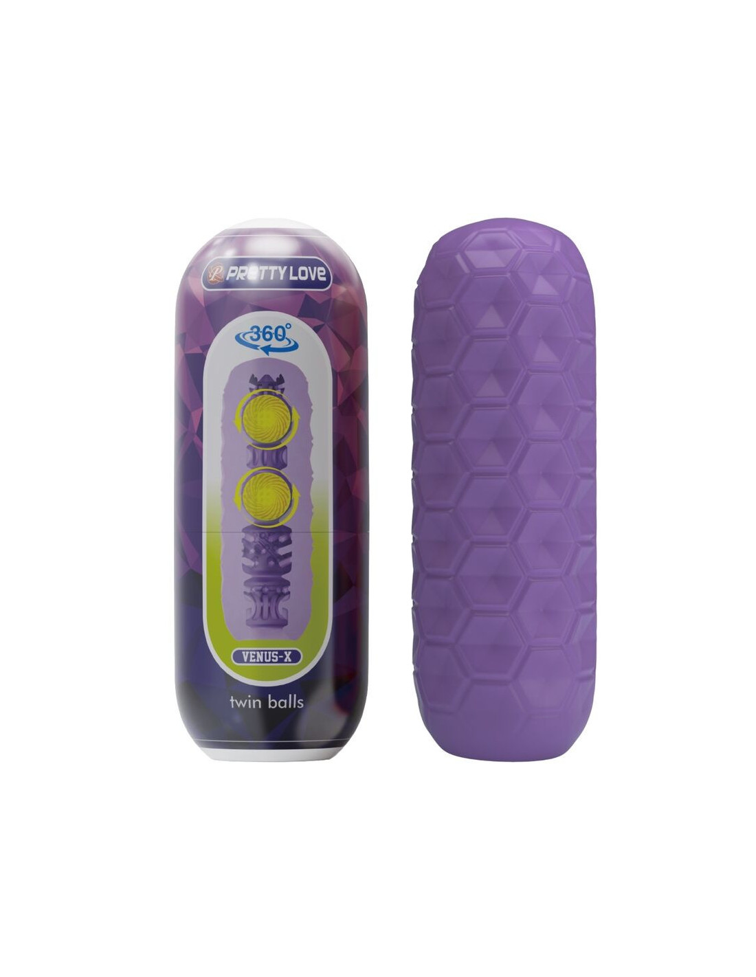 PRETTY LOVE – dvigubi kamuoliukai vyrams, violetinis masturbatorius