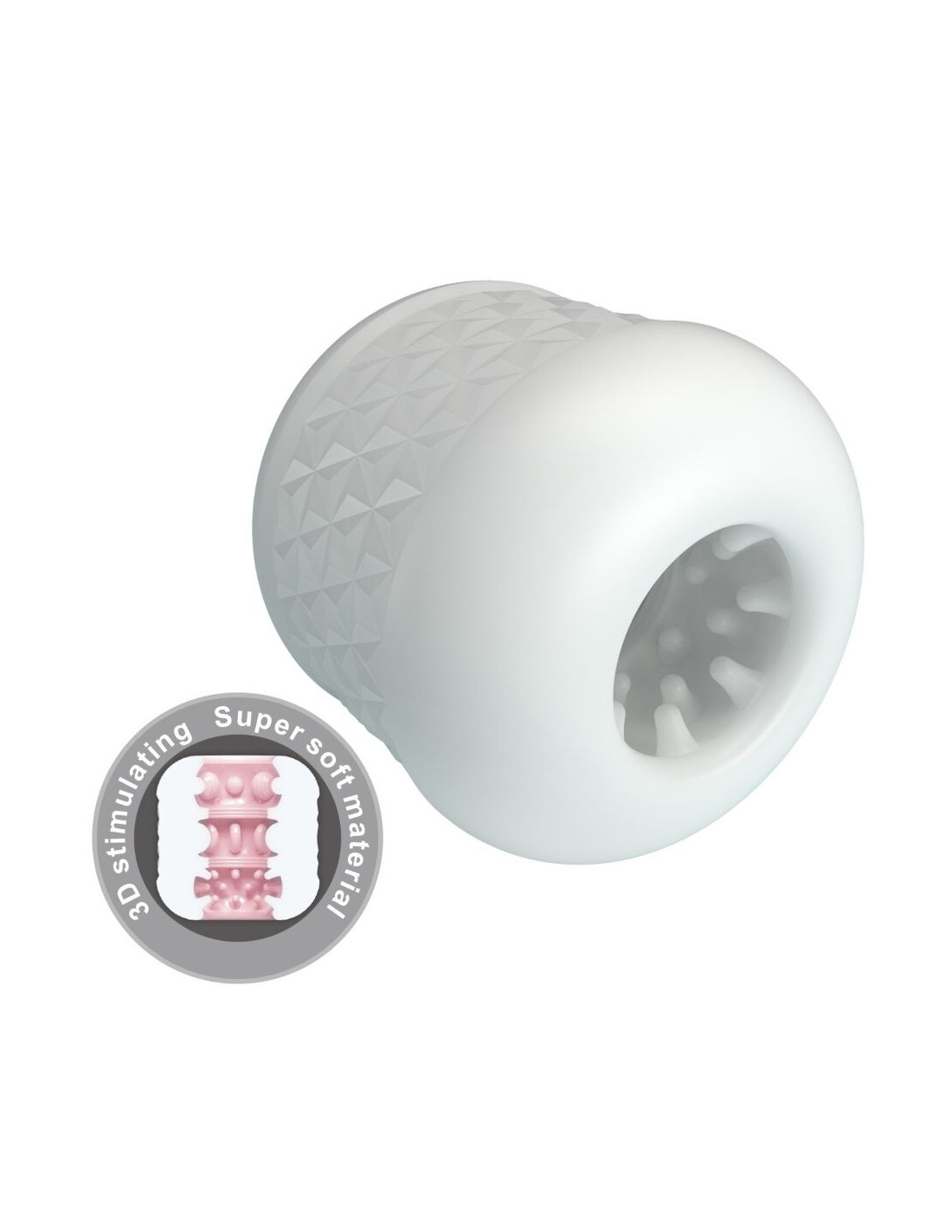 Išbandykite šį unikalų, itin minkštą glostymo įrankį su dvipusėmis angomis, pro kurias patenkama prie daugybės minkštų ir tamprių jutiklių, esančių jaukiame vidiniame tekstūruotame kanale. Tekstūruotas kanalas ir malonumo jutikliai sukurti taip, kad glostytų ir glamonėtų, kol būsite pasiruošę fenomenaliam malonumo sprogimui! Atsparus vandeniui ir lengvai valomas.