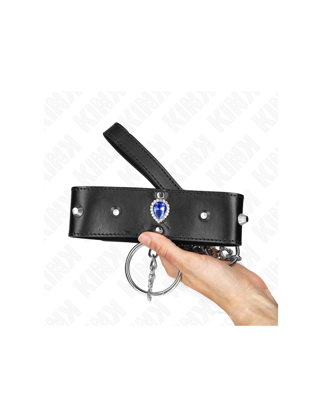 KINK - KAKLO PAPUOŠALAS 65 CM SU DIRŽELIU SU MĖLYNAIS DEIMANTAIS, REGULIUOJAMAS 36-43 CM X 5 CM