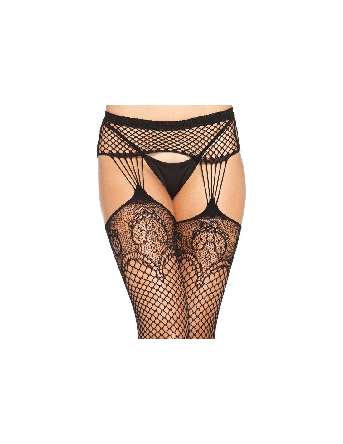 Jausmingos ir labai provokuojančios, šios pėdkelnės su keliaraiščiu yra labai universalios, jos puikiai tinka tiek dienai, tiek ypatingoms naktims. Šios tinklinės pėdkelnės pasižymi žavingu abstrakčiu motyvu šlaunų viršutinėje dalyje.