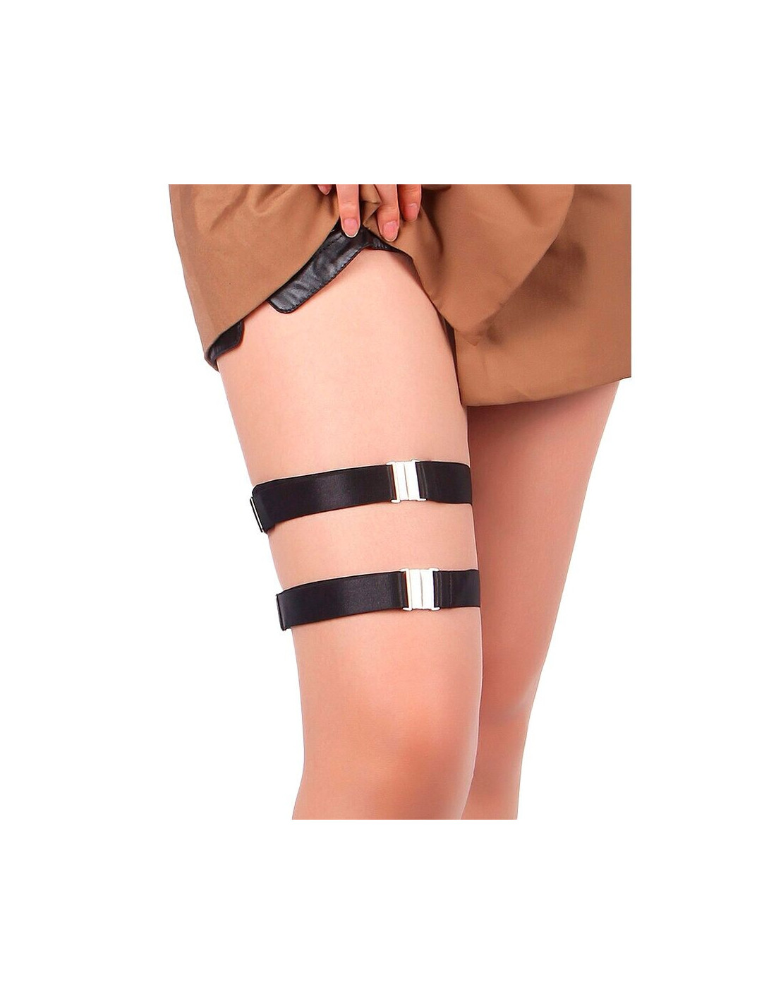 Pagaminti iš sintetinės odos (PU), šie kojų žiedai pasižymi patvaria ir elegantiška apdaila, idealiai tinkančiais prie apatinių, alternatyvių aprangos derinių ar vergijos įkvėptų drabužių. Jų dizainas su elastiniais dirželiais leidžia patogiai ir prisitaikyti prie skirtingų kūno tipų, užtikrinant tvirtą efektą nepakenkiant judrumui.