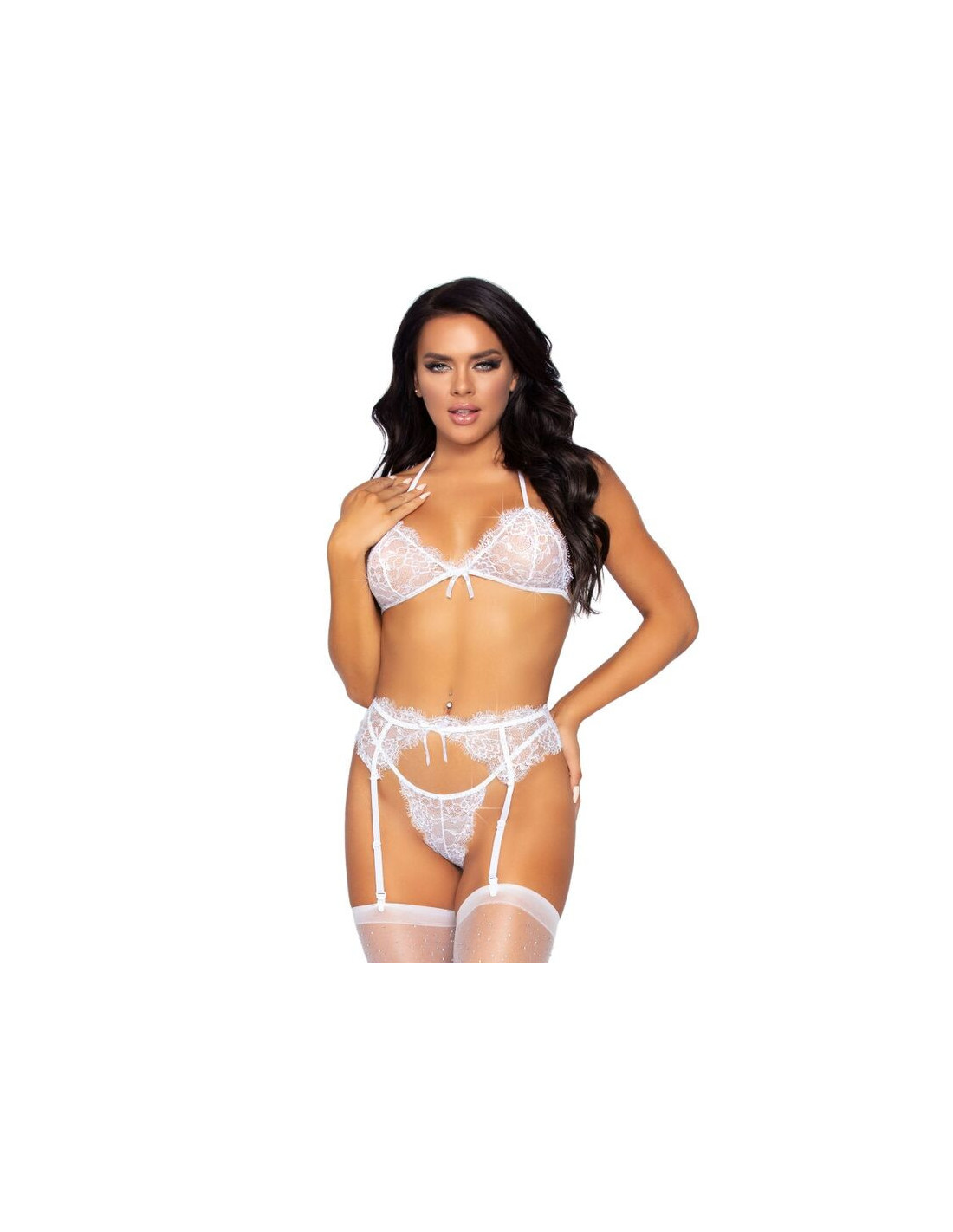 Prestižinio apatinio trikotažo prekės ženklo „Leg Avenue“ sukurta ir pagaminta liemenėlė su cirkoniais ir blakstienomis bei raišteliais. Padidinkite savo moteriškumą įsigydami išskirtinį gundymo, jausmingumo ir elegancijos aksesuarą.
