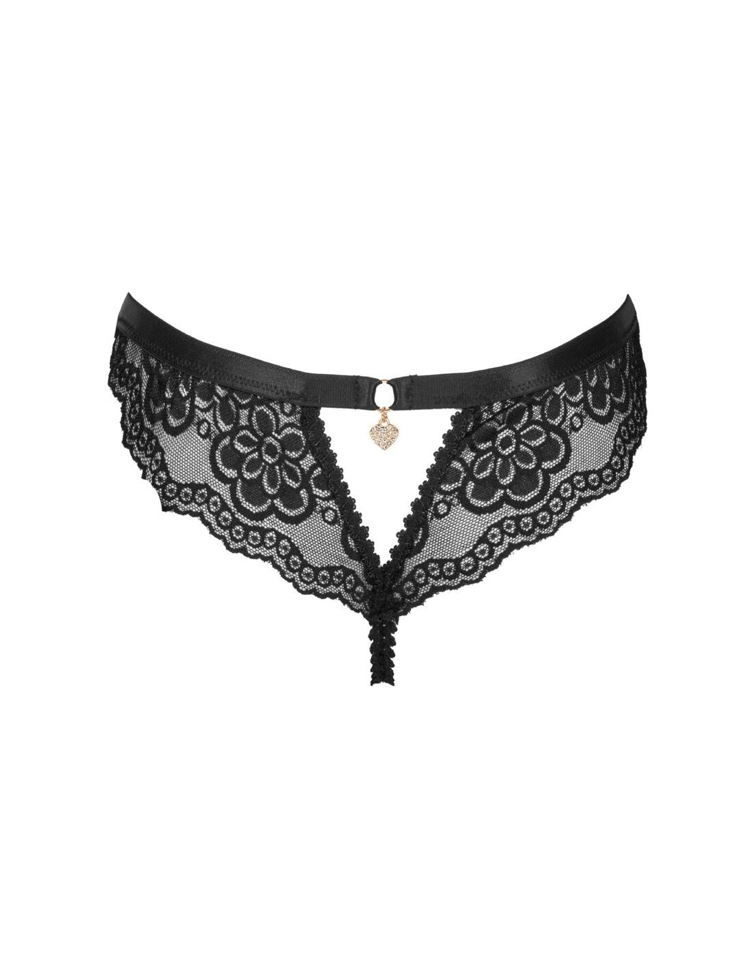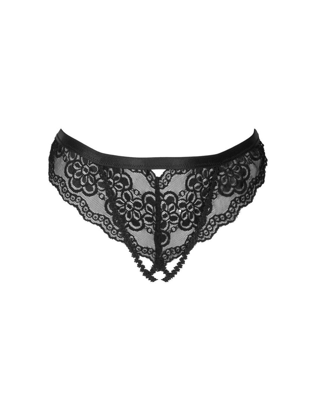 Nepaprastai seksualios ir gundančios kelnaitės, pasiūtos iš patogių ir nelimpančių juodų nėrinių, puikiai tinkančios kaip įvairių formų aksesuaras. Šis unikalus kelnaičių modelis skirtas drąsioms moterims, kurios nebijo parodyti savo seksualumo ir moteriškos galios.