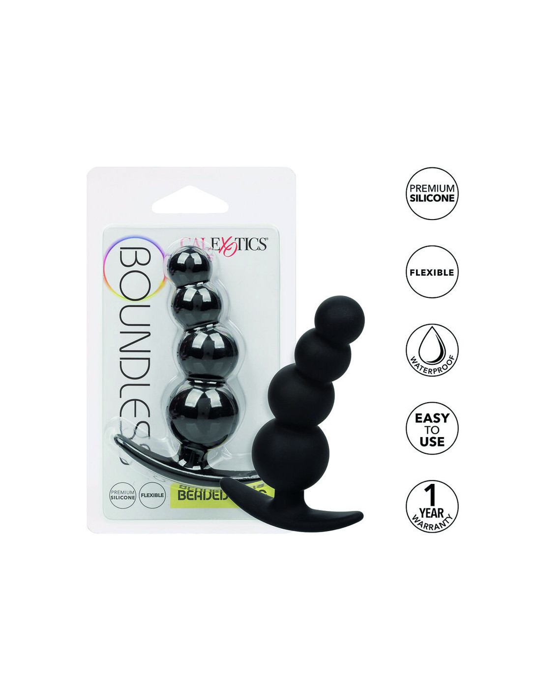CALEXOTICSMalonumas tampa begalinis su drąsiu „Boundless“ karoliukais puoštu kaiščiu. Aistringas kaištis sukurtas aptakiam malonumui su laipsniško karoliukų dizaino, lanksčiu korpusu ir lengvai patraukiama rankenėle. Puikiai tinka tiek pradedantiesiems, tiek erotikos ekspertams, laipsniškas karoliukų kotas padidina savo apimtį, kad sustiprintų malonumą. Kol mėgaujatės keliančius pojūčius, naudokite lengvai patraukiamą pagrindą garų stimuliacijai, lengvam įdėjimui ir švelniam išėmimui. Lankstus zondas pagamintas iš kūnui saugaus silikono su lanksčiu, besiūliu korpusu. Kūnui saugi medžiaga yra be kvapiklių ir ftalatų, kad jūsų jautriausios vietos būtų patenkintos ir sveikos.
