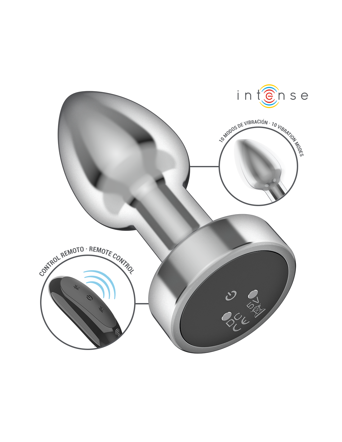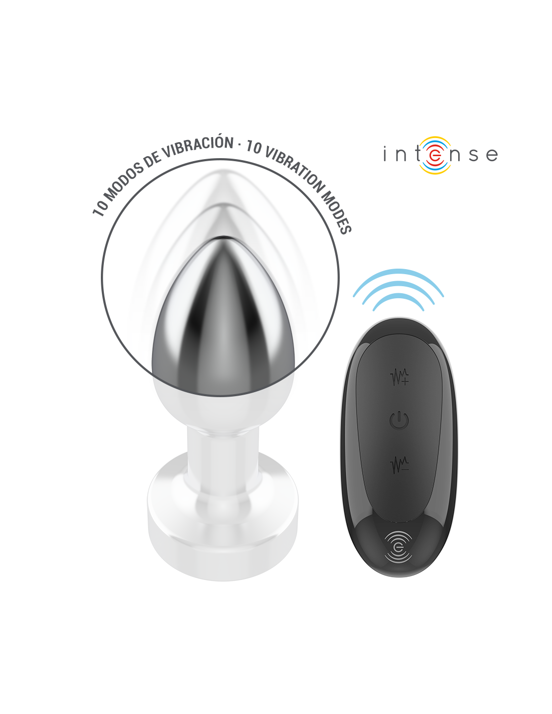 INTENSE - ANALINIS KAIŠTELIS, 10 VIBRACIJOS METALINIS, SU NUOTOLINIO VALDYMO PULTU