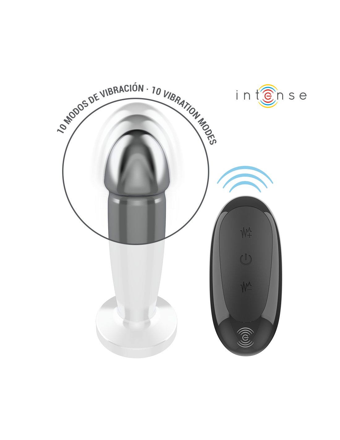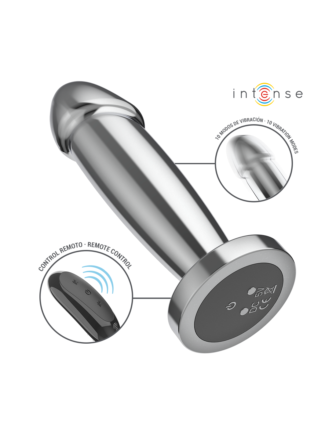 INTENSE - ANALINIS KAIŠTIS, 10 VIBRACIJOS TAŠKŲ, METALINIS DILDO SU NUOTOLINIO VALDYMO PULTELIU