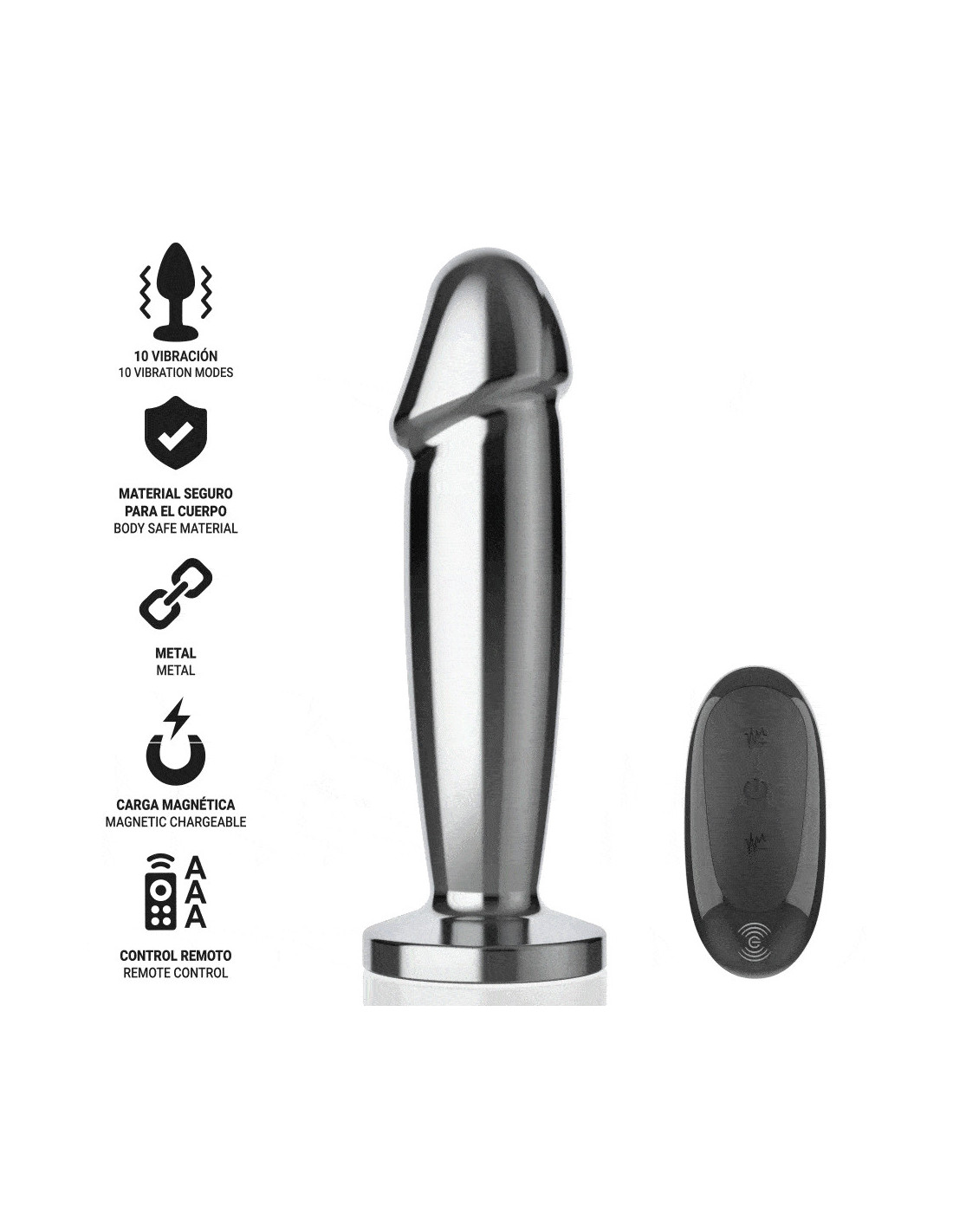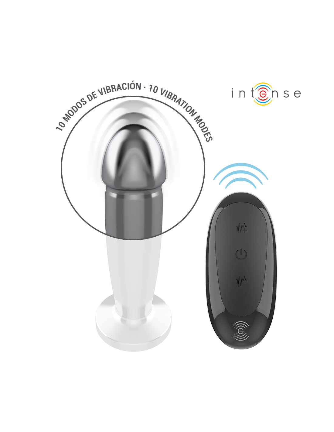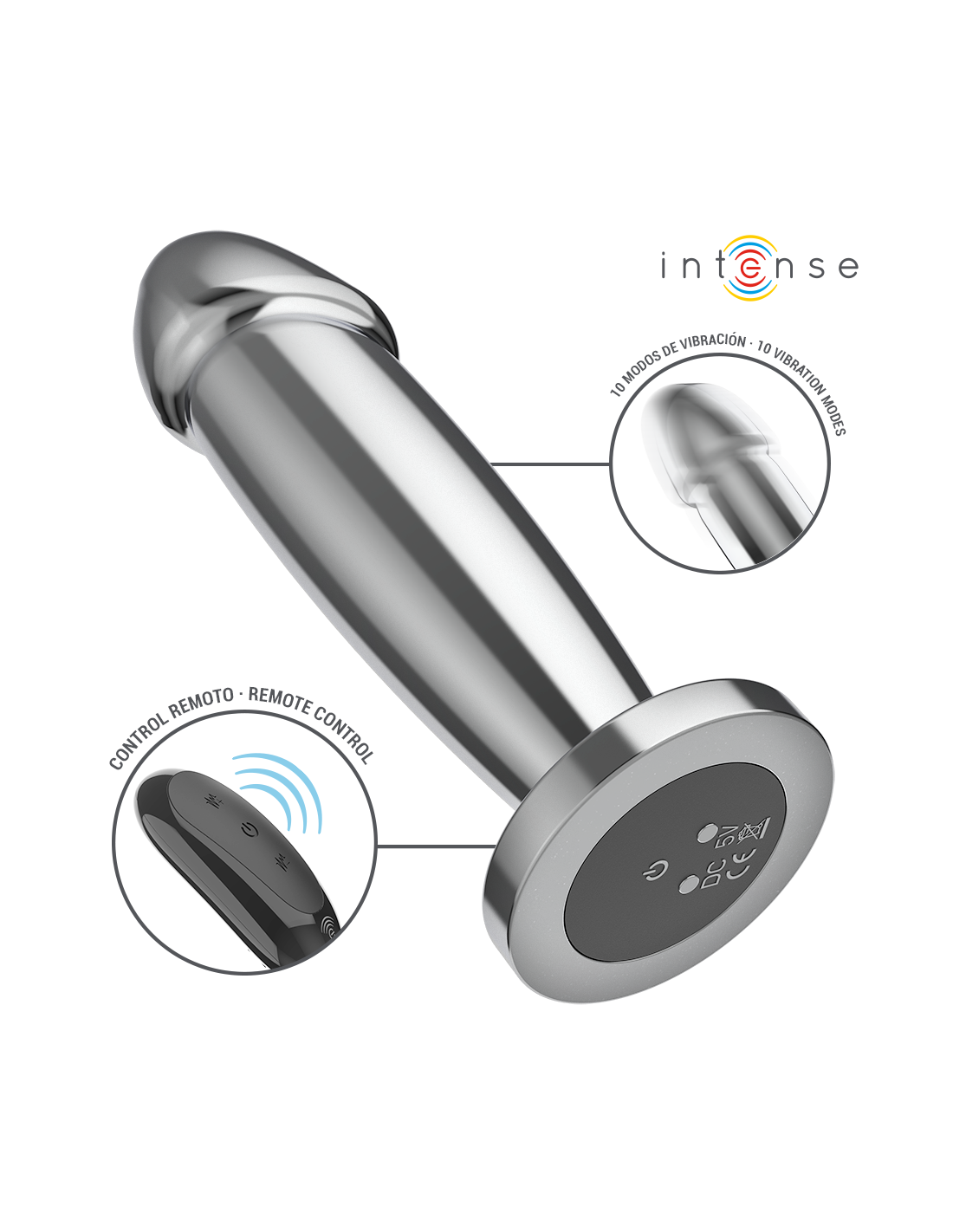 INTENSE - ANALINIS KAIŠTIS 10 VIBRACIJOS METALINIS DILDO SU NUOTOLINIO VALDYMO PULTU M