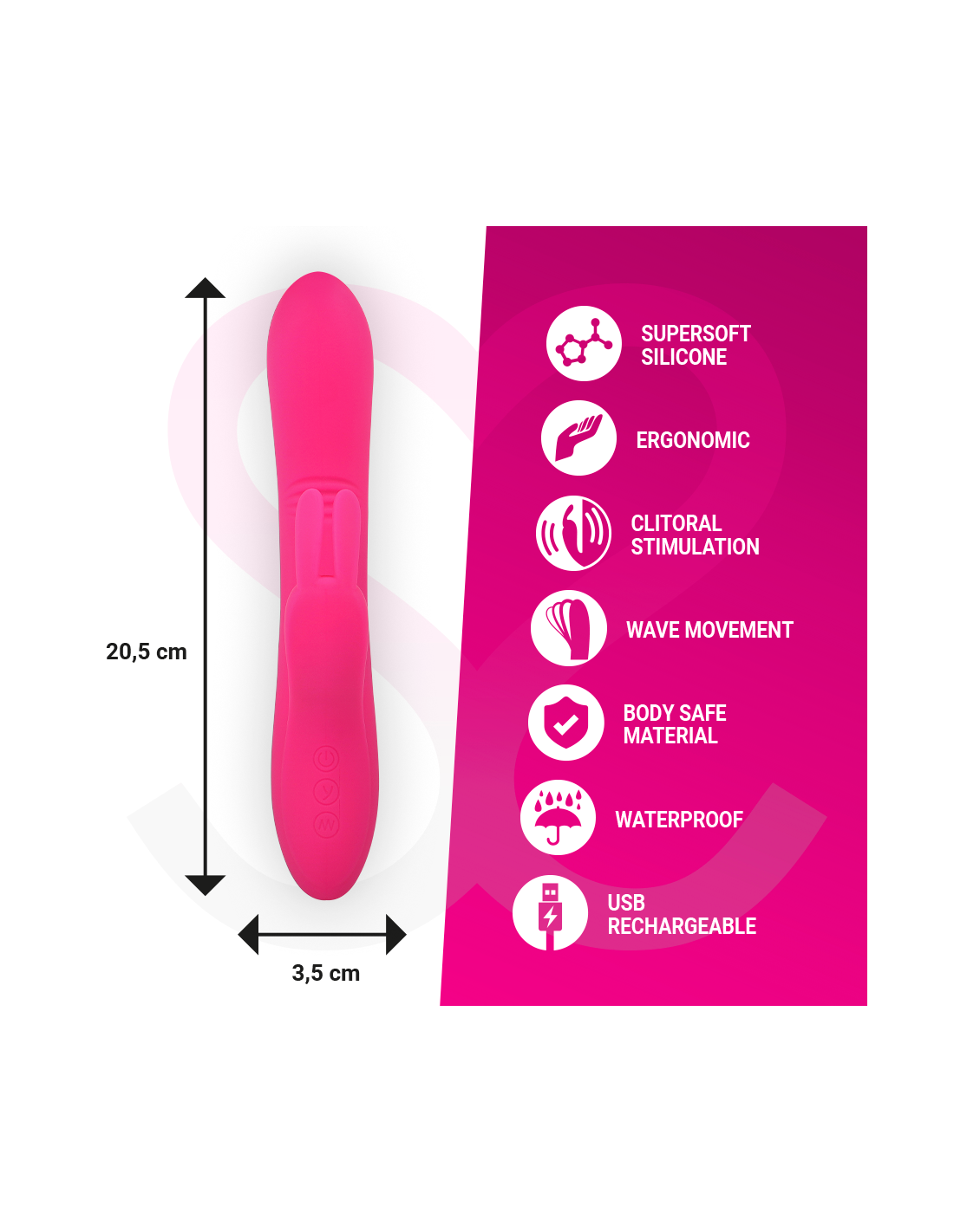 „Mojavimo “ judesys, įkvėptas pirštų pojūčio masažuojant G tašką. Jis puikiai prisitaiko prie jūsų kūno ir vienu metu stimuliuoja kelias erogenines zonas.