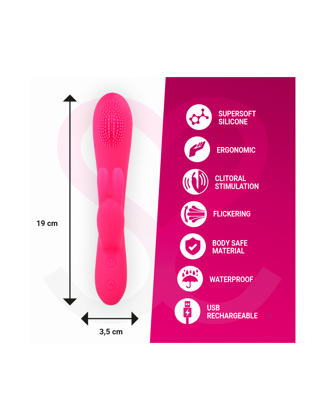 - Nesustabdomas: kutenimo sistema, masažuoja G tašką geriau nei du pirštai vienu metu