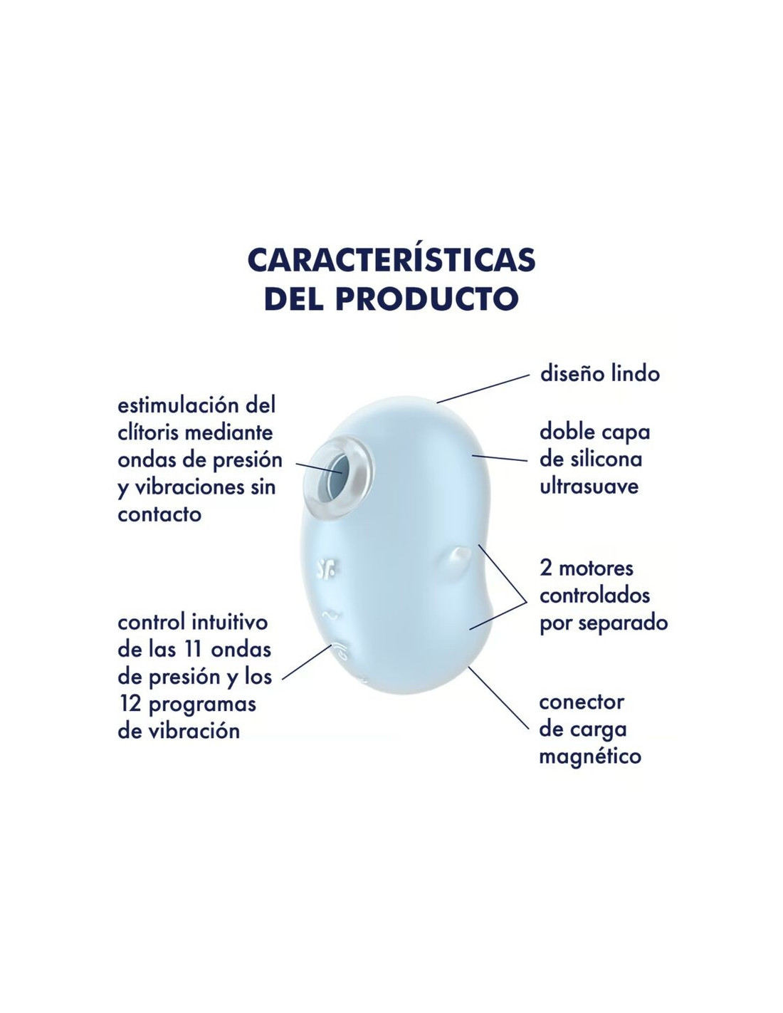 Du viduje esantys varikliai priverčia šį slėgio bangų vibratorių vibruoti ir drebėti iš malonumo. Uždėkite vibratoriaus angą ant klitorio ir patirkite bekontakčius slėgio bangų efektus su „Satisfyer Air Pulse“ technologija. Arba galite mėgautis savo erogenine zona vibracija: derinkite 11 slėgio bangų intensyvumo lygių ir 12 vibracijos programų pagal savo skonį.