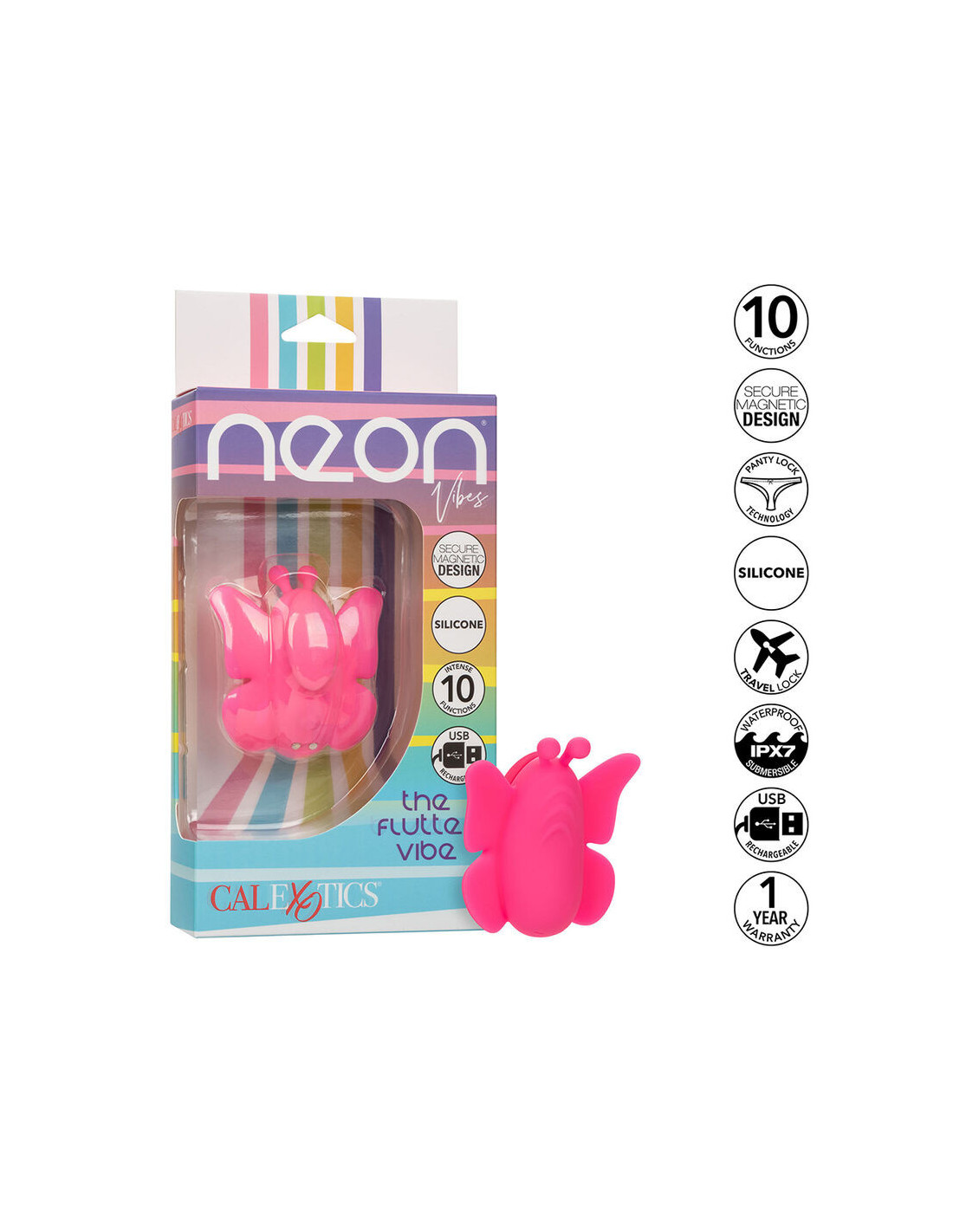 CALEXOTICS - NEON VIBES THE FLUTTER VIBREŽIMO STIMULIATORIUS, 10 VIBRACIJOS ROŽINIS