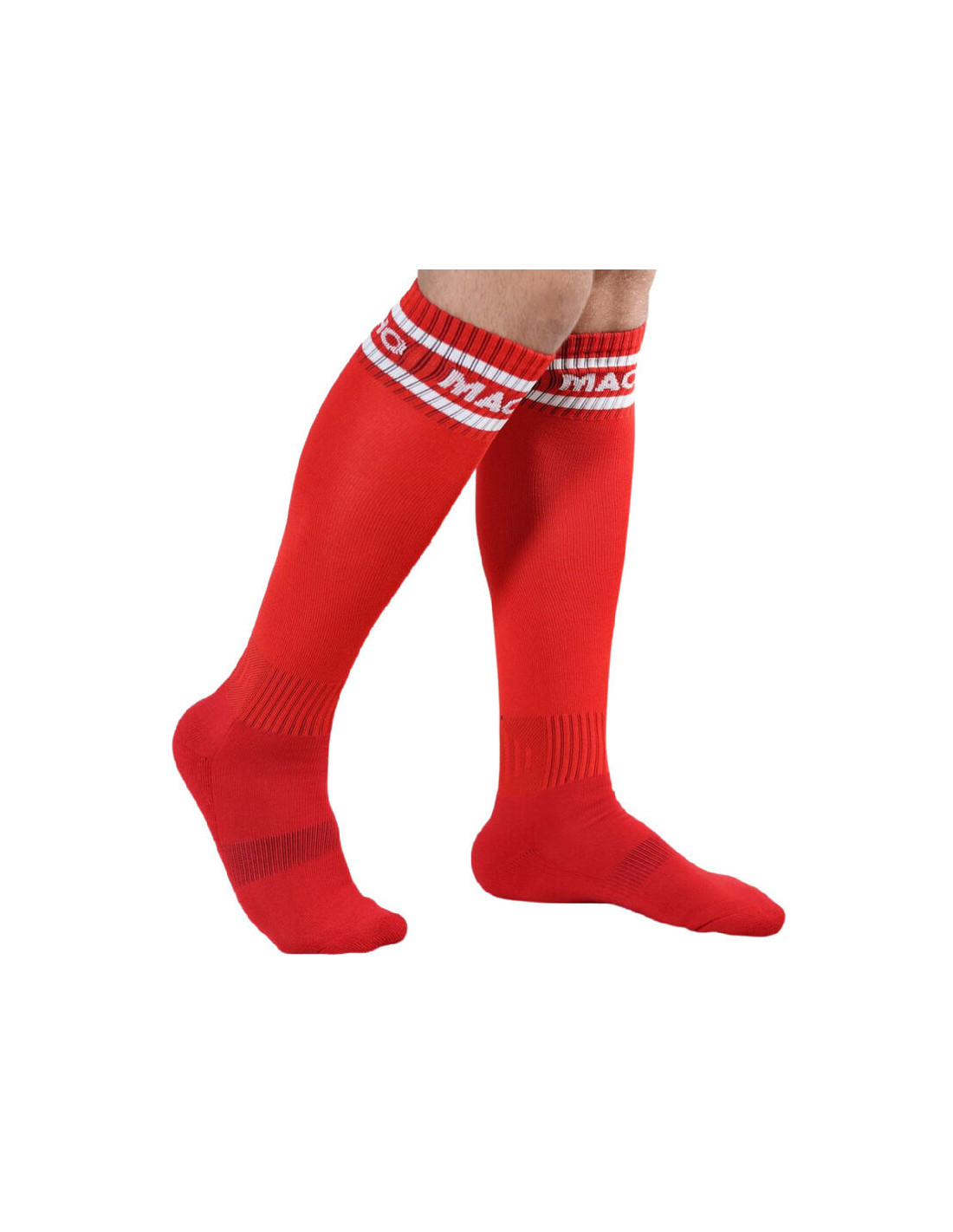 Seksualios ir patogios futbolo stiliaus ilgos kojinės su prekės ženklo logotipu. Tai fetišo elementas, kuris dera su daugeliu mūsų apatinių drabužių, tad derinkite jas kartu!