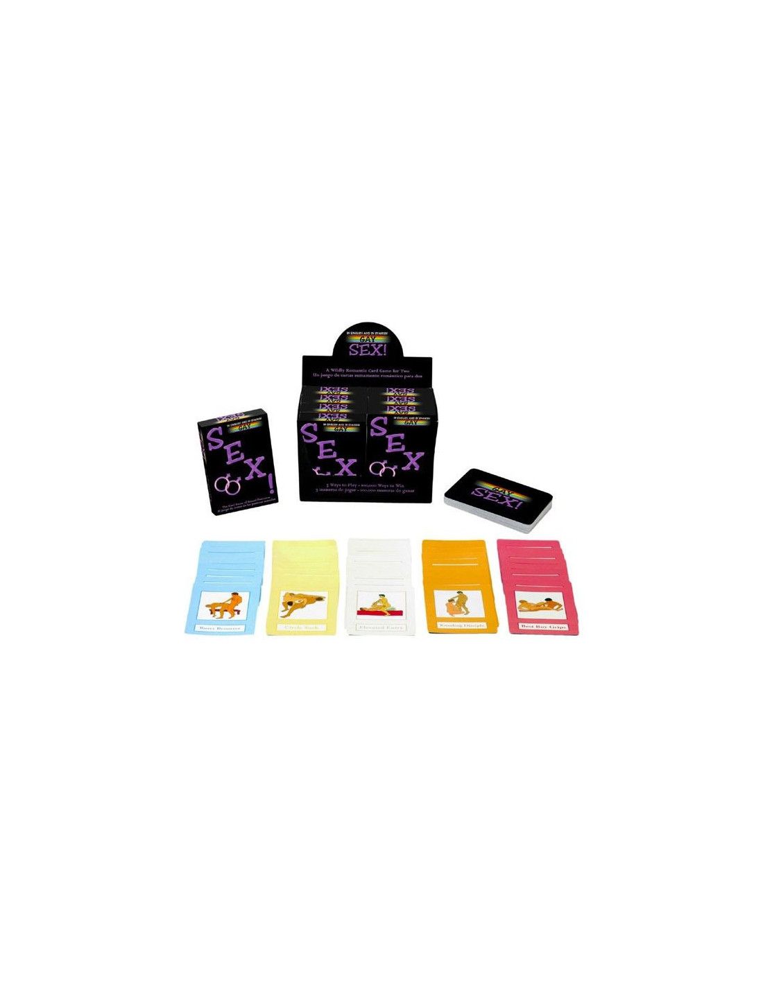 Žaisdami vieną iš trijų „Gay Sex!“ kortų žaidimų, jūs ir jūsų mylimasis naudojate kortas, kad suplanuotumėte vieną iš 100 000 galimų fantazijų.