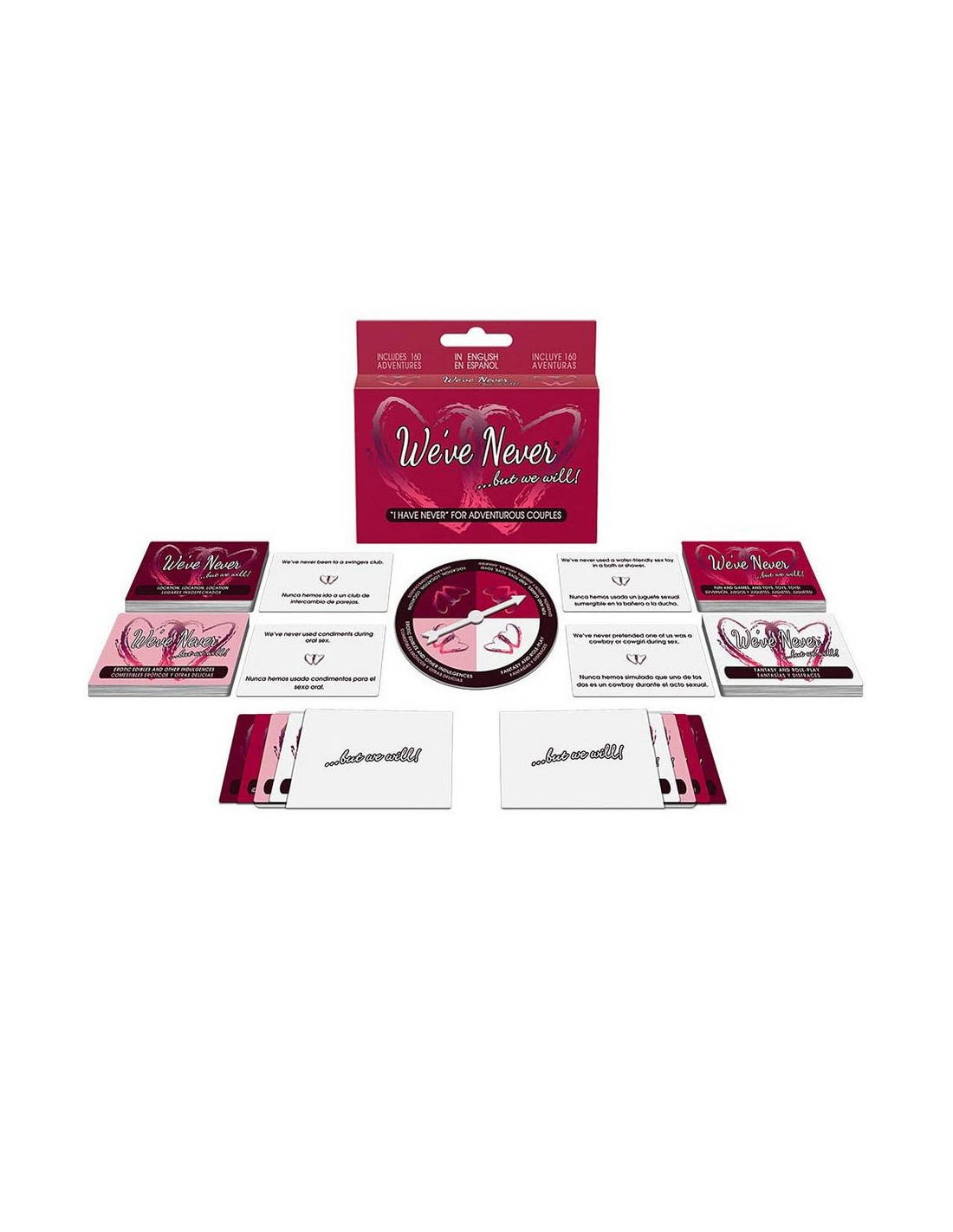 - Rinkinį sudaro: 40 vietų kortelių; 40 pramogų ir žaidimų bei „Žaislai, žaislai, žaislai!“ kortelių; 40 erotinių valgomųjų ir kitų malonumų kortelių; 40 fantazijos ir vaidmenų žaidimų kortelių; 2 „...bet mes tai padarysime!“ vokai; 1 suktukas ir žaidimo taisyklės.
