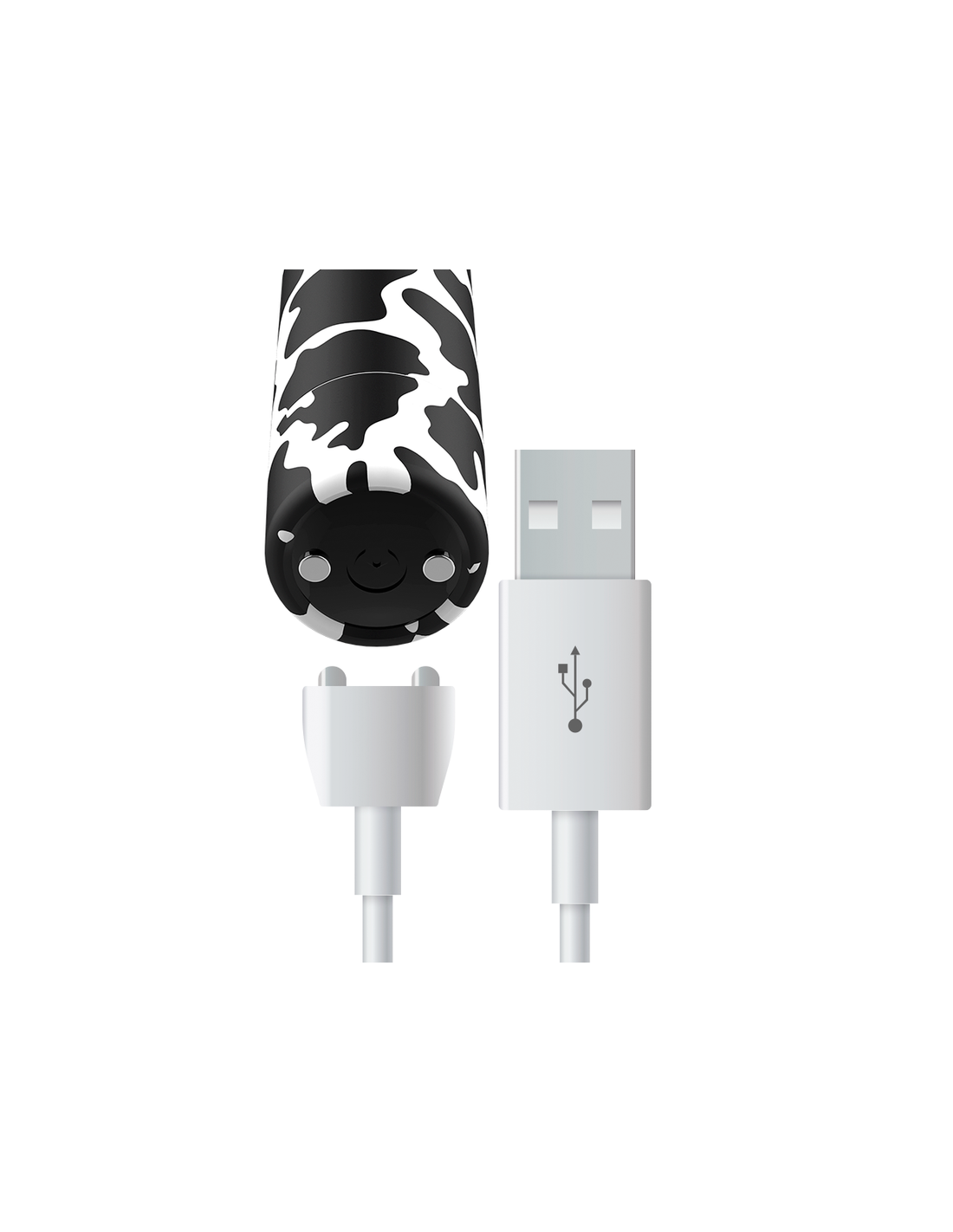 Įkraukite savo aistrą vos per 30 minučių, prijungdami pridedamą USB laidą prie magnetinio įkrovimo prievado, esančio masažuoklio gale. Mažu greičiu vibracijos veikia iki 2 valandų, o dideliu greičiu – iki 70 minučių.