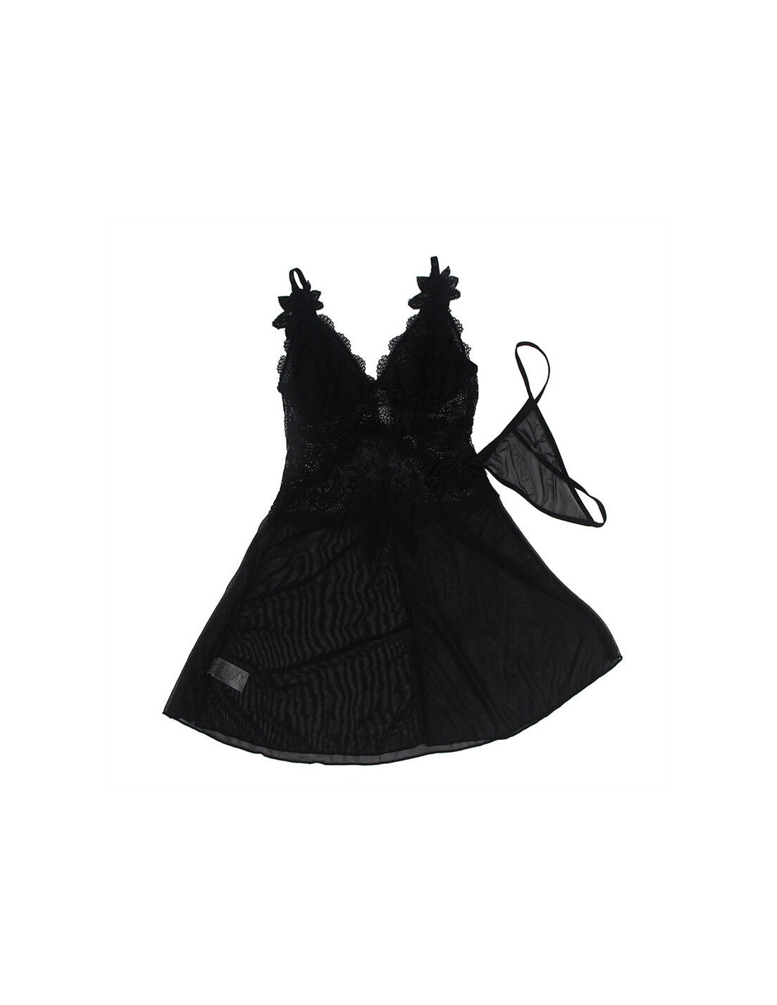 SUBBLIME - BABYDOLL TILIO AUDINYS SU NĖRINĖMIS IR GĖLĖMIS JUODA S-M