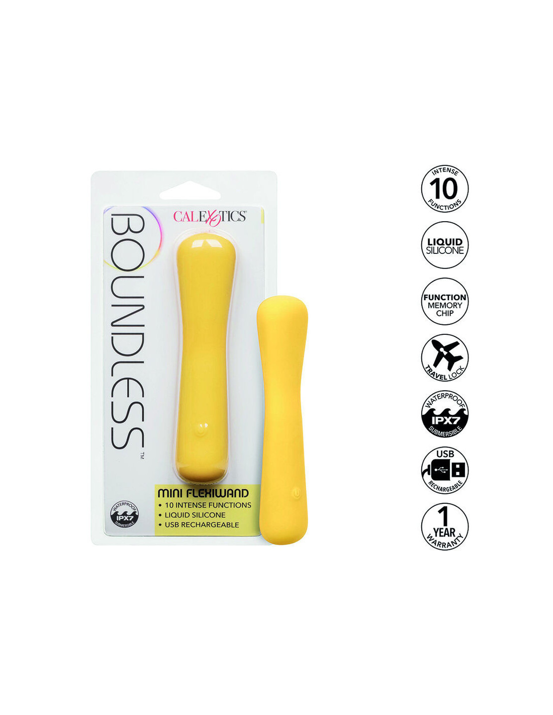 Patirkite aukščiausią malonumą su „ Boundless Mini FlexiWand“ – universaliu mini masažuokliu, pasižyminčiu lanksčia forma, kuri lankstosi ir išlaiko bet kokią padėtį. Turėdamas 10 intensyvių funkcijų, šis žaisliukas atveria begales galimybių jūsų malonumui. Pagamintas iš skysto silikono, jis pasižymi minkšta ir lygia tekstūra, suteikiančia prabangos pojūtį. Naujausios kartos atminties lustas prisimena ir atnaujina paskutinę naudotą funkciją. Apsauginis kelioninis užraktas suteikia ramybės transportuojant, o 3 sekundžių paspaudimu jis įjungiamas arba išjungiamas. Išlaisvinkite savo troškimus su „Boundless Mini FlexiWand“, kuris kaskart siūlo suasmenintą ir malonią patirtį, nes gali lankstytis ir išlaikyti bet kokią padėtį bei turi galingas funkcijas.