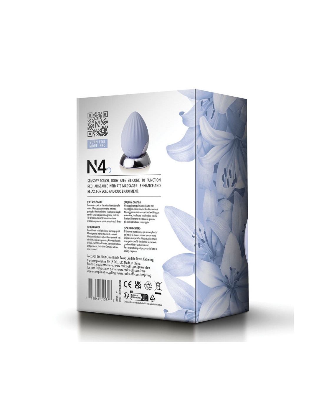 El Niya N4 de Rocks-Off es un masajeador íntimo discreto y sofisticado, diseñado para brindar una experiencia de placer enfocada y relajante. Su forma ergonómica tipo "huevo" se adapta perfectamente a la palma de la mano, permitiendo un uso cómodo y preciso sobre zonas sensibles del cuerpo.