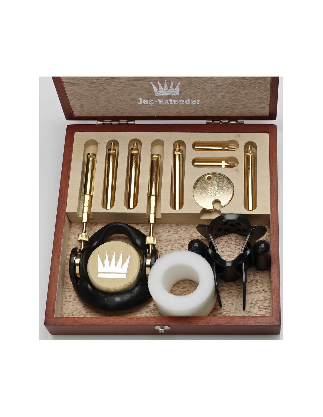 Tai aukščiausios klasės modelis ir geriausias rinkoje. „Jes Extender Gold“ turi visus įprasto „Jes Extender“ privalumus, be to, prabangų turinį ir priedus medinėje dėžutėje. Pagamintas iš 24 karatų aukso sluoksnio, šis modelis yra aukščiausios klasės varpos ilgintuvas rinkoje. Rinkoje yra daugiau atsarginių dalių ir aukščiausios klasės priedų, kuriuos galite įsigyti mūsų parduotuvėje. Suteikiame jums viso gyvenimo garantiją.