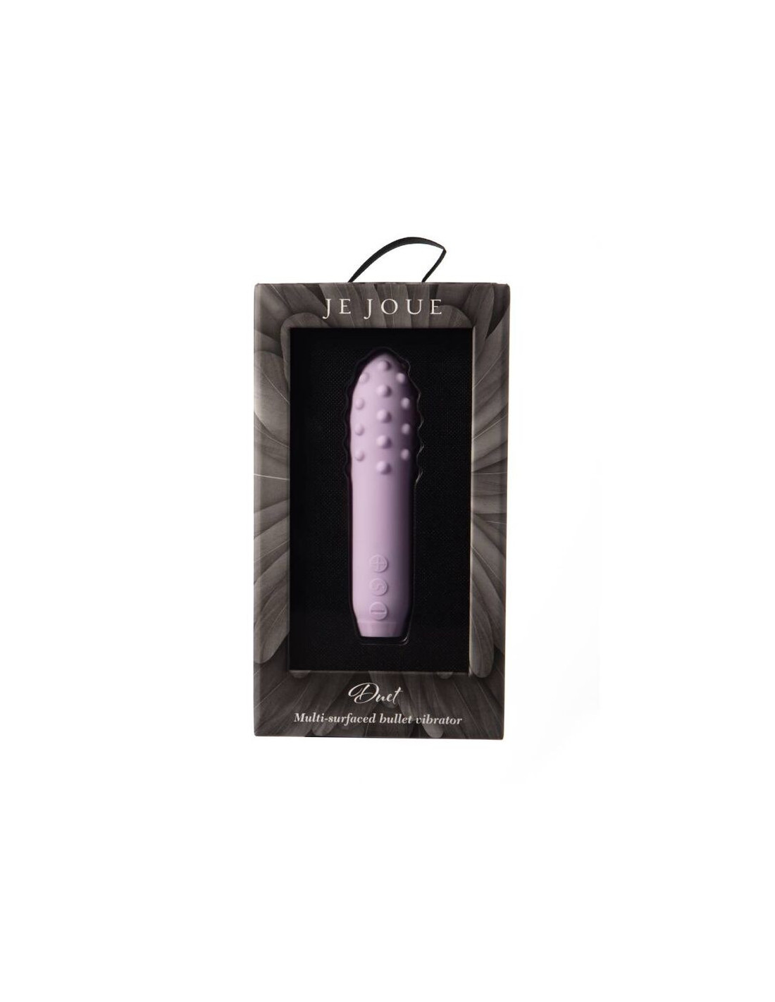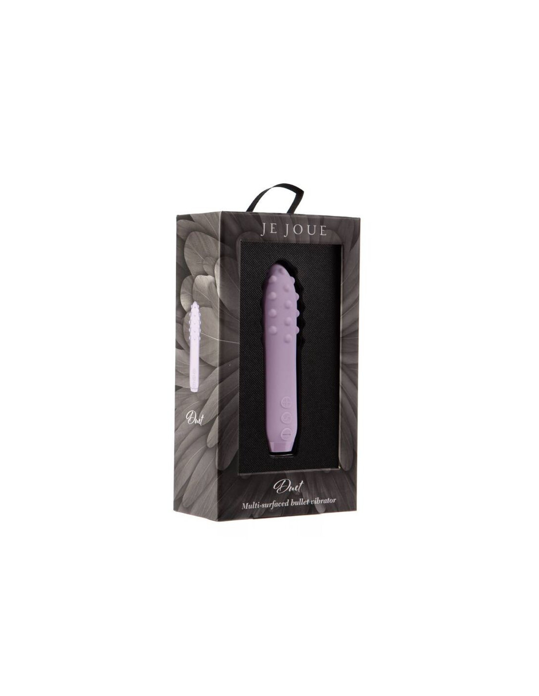 Susipažinkite su „Duet“ – daugiapaviršiu vibratoriumi su mažais, apvaliais, laipsniškais malonumo taškeliais vienoje pusėje ir šilkinio švelnumo paviršiumi kitoje, kad sukeltų įvairius pojūčius visame kūne. Naudokite „Duet“, kad stimuliuotumėte išorinius malonumo taškus, tokius kaip klitoris, speneliai ir šlaunys. O jei norite tyrinėti toliau, „Duet“ yra puikus partneris švelniam, negiliam įsiskverbimo žaidimui su savo giliai sodriomis vibracijomis. Su šilkinio minkštumo, kūnui saugiu medicininės klasės silikonu „Duet“ malonu liesti ir dar geriau patirti. Leiskite garsiesiems „Je Joue“ dundantiems varikliams giliau lepinti jūsų kūną, suteikdami jums sodresnę, malonesnę intymią patirtį.