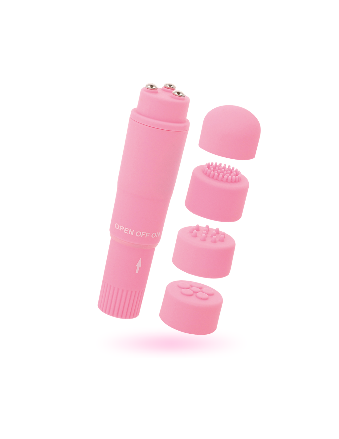 Atsipalaiduokite, sumažinkite stresą ir palikite kelias minutes sau. Šis mini daugiapakopis masažuoklis su keturiomis minkštomis, keičiamomis galvutėmis, iš kurių galite rinktis, stimuliuos būtent tą tašką, kurio jums labiausiai reikia. Apdailintas šilkiniu blizgesiu, šis galingas vibratorius yra švelnus liesti, itin elegantiškas ir suteiks dar nepatirto malonumo, o dėl savo diskretiško dydžio galite jį pasiimti kur tik norite.