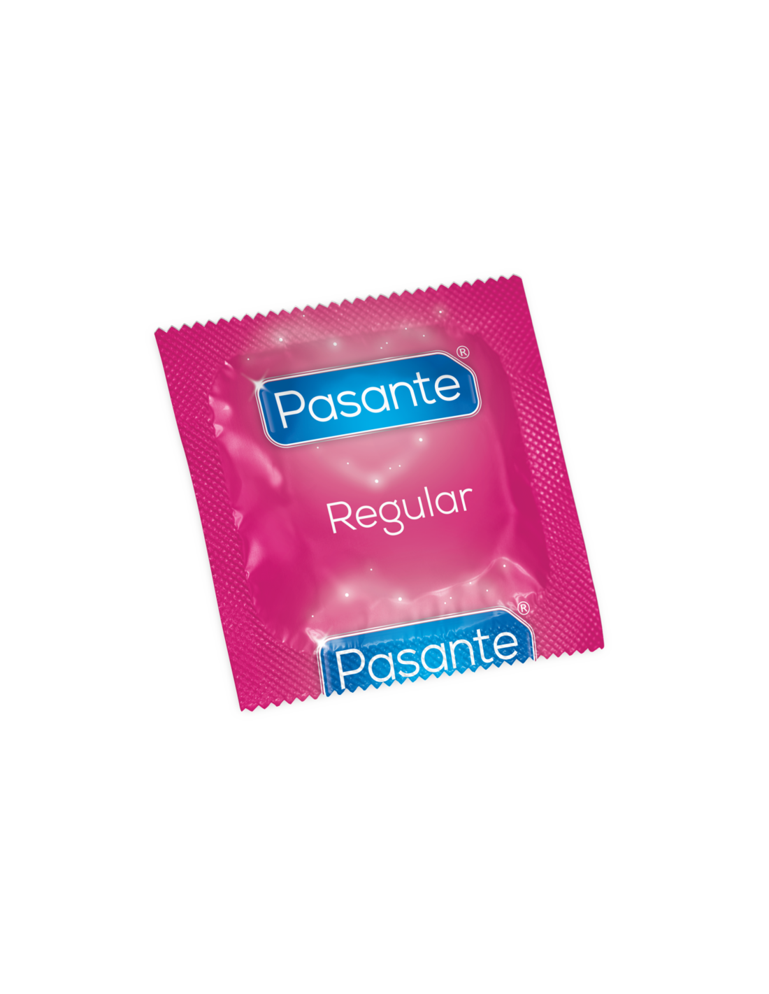 „Pasante Regular“ prezervatyvai yra šiek tiek siaurėjančios formos, kad būtų natūralus pojūtis. Minkšti, natūralios spalvos ir su žinduko galiuku.