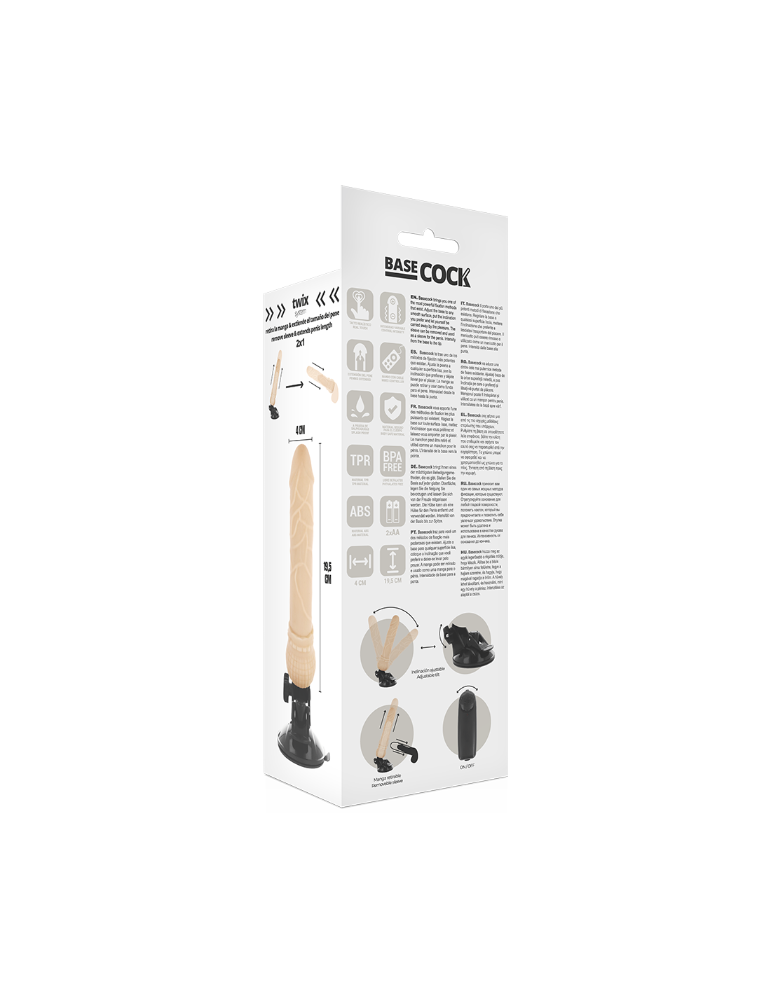 BASECOCK – REALISTINIS VIBRATORIUS SU NUOTOLINIO VALDYMO VALDYMU, ODOS DYDIS 19,5 CM – O – 4 CM