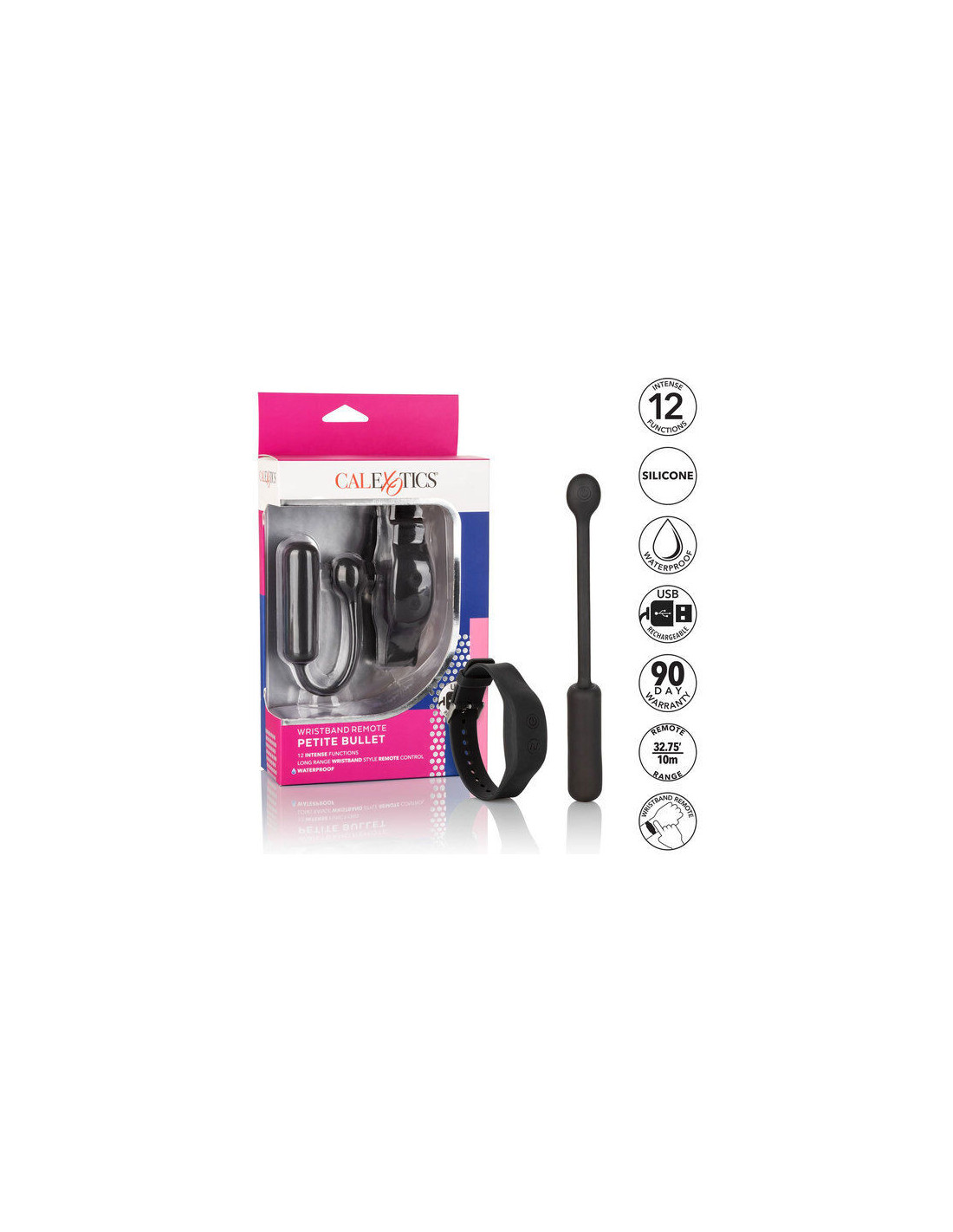 CALEXOTICS„Petite Bullet“ – tai galingas mini vibratorius su diskretiškai smagiu riešo valdikliu, skirtu malonumo ieškantiems nuotykių ieškotojams. Elegantiškas ir diskretiškas apyrankės valdiklis leidžia jums arba jūsų mylimajam lengvai valdyti vibracijos intensyvumą vienu mygtuko paspaudimu.