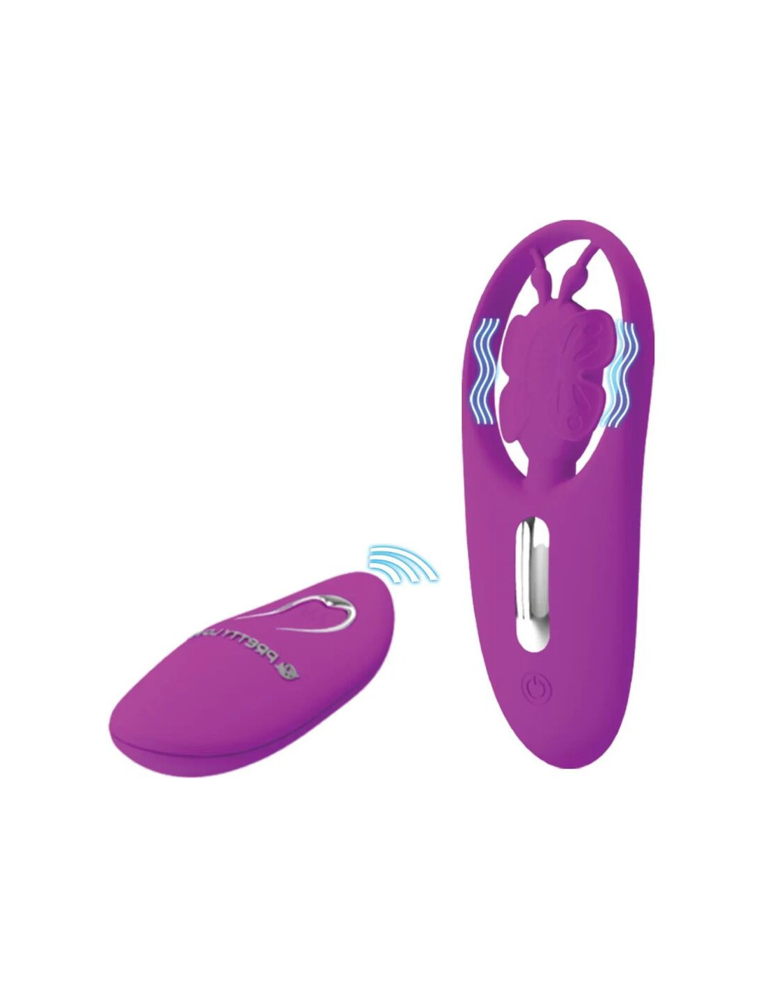 PRETTY LOVE – šokantis drugelio formos kelnaičių stimuliatorius su nuotolinio valdymo pultu, alyvinis