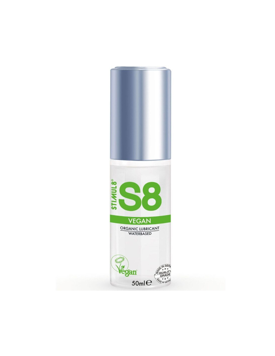 Aukščiausios kokybės vandens pagrindu pagamintas veganiškas „S8“ lubrikantas puikiai tinka vartotojams, ieškantiems kūnui saugaus, kokybiško lubrikanto, kuris sustiprintų intymumą ir palengvintų malonius nuotykius. Ši nuostabi, ilgai išliekanti „S8“ formulė yra visiškai veganiška, todėl tai yra sveikatai ir aplinkai draugiškas pasirinkimas intymios higienos srityje. Formulėje taip pat nėra parabenų, ftalatų, glitimo, sulfatų, be to, joje nėra pridėtų dažiklių ar stiprių konservantų, todėl ji suteikia nenugalimą „natūralų“ patrauklumą. Vandens pagrindu pagamintas veganiškas „S8“ lubrikantas taip pat atitinka visus galiojančius ES reglamentus dėl intymios higienos produktų ir yra patikima, konkurencinga ir skaidri alternatyva kitiems, nepatvirtintiems veganiškiems pasirinkimams rinkoje.