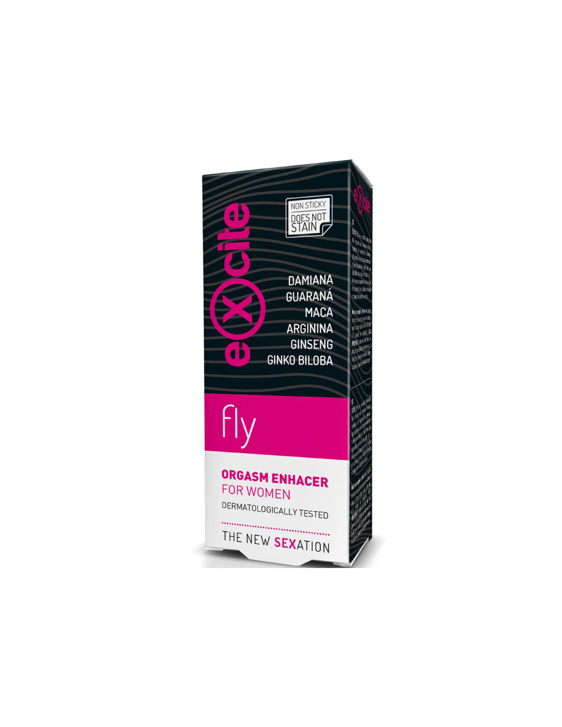 EXCITE FLY“ – tai nepakartojamas orgazmo stipriklis, jungiantis augalų ekstraktus su pripažintomis gaivinančiomis savybėmis ir hiperheminiu poveikiu, mažinančiu odos paraudimą; ką pastebėsite? Malonų šilumos, šalčio ar dilgčiojimo pojūtį, kuris padidins jautrumą intymiose vietose, idealiai tinka stimuliuoti ir pratęsti poros santykius.
