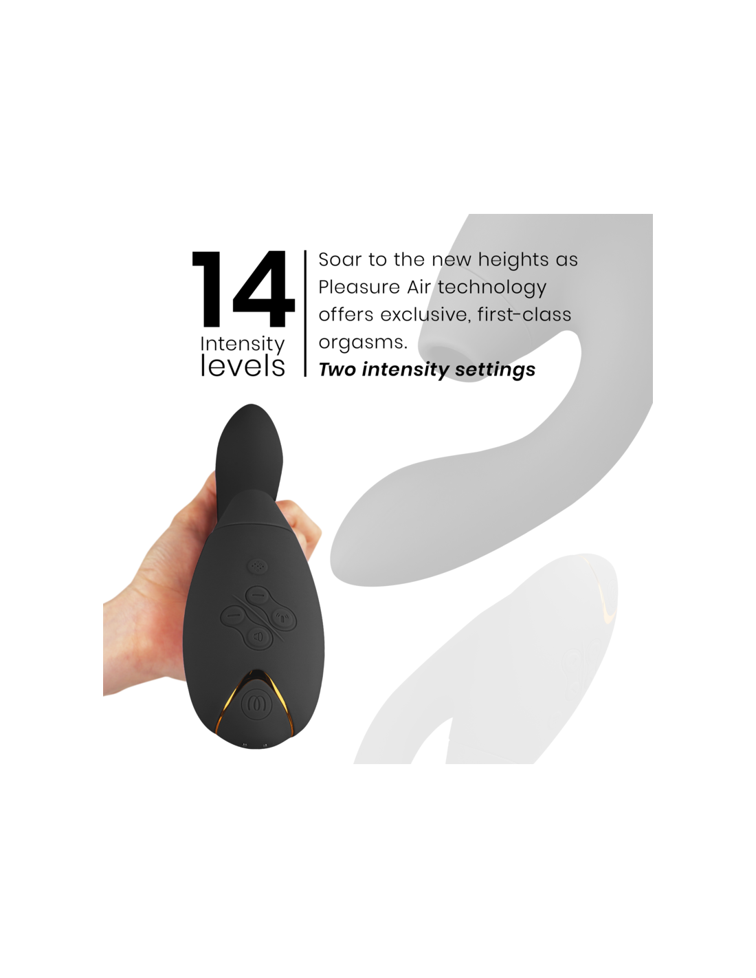 „DUO2“ – tai unikalus aukščiausios kokybės triušio formos žaisliukas, kuris derina sensacingą klitorio stimuliaciją su galingu G taško masažu, kad sukurtų pažangius, pirštus riestinčius orgazmus. „Pleasure Air“ technologija stimuliuoja klitorį tobulu pulsuojančių ir masažuojančių oro slėgio pokyčių balansu, neliečiant klitorio. Tai užtikrina, kad jūsų jautriausia vieta niekada nebus per daug stimuliuojama, kol patirsite kelis intensyvumo lygius, suteikdami jums kito lygio orgazmus.