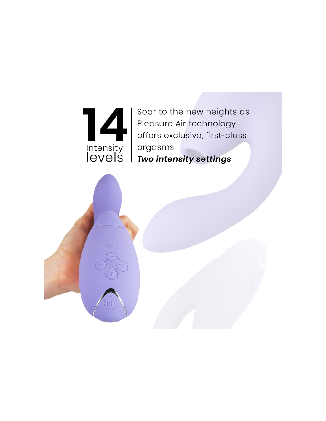 „DUO2“ – tai unikalus aukščiausios kokybės triušio formos žaisliukas, kuris derina sensacingą klitorio stimuliaciją su galingu G taško masažu, kad sukurtų pažangius, pirštus riestinčius orgazmus. „Pleasure Air“ technologija stimuliuoja klitorį tobulu pulsuojančių ir masažuojančių oro slėgio pokyčių balansu, neliečiant klitorio. Tai užtikrina, kad jūsų jautriausia vieta niekada nebus per daug stimuliuojama, kol patirsite kelis intensyvumo lygius, suteikdami jums kito lygio orgazmus.