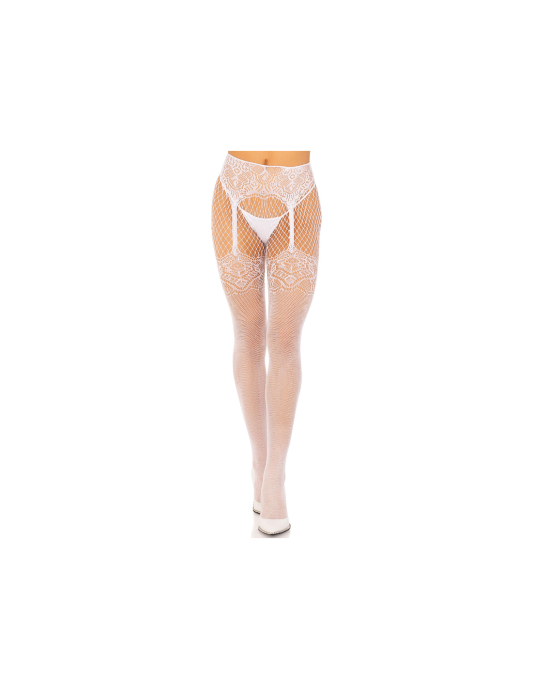 Šios tinklinės kojinės su sintetiniu keliaraiščiu yra drąsus ir provokuojantis pasirinkimas, papildantis jūsų aprangą. Tinklinis audinys suteikia intrigos ir jausmingumo, o sintetinis keliaraiščio diržas užtikrina saugią ir patogią atramą.