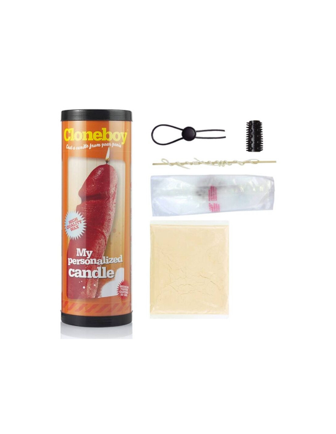 „Cloneboy“ žvakės „Cast Your Own Candle“ rinkinyje yra visi reikalingi daiktai, norint pasigaminti parafininę varpos kopiją vienam arba kartu su partneriu. „Cloneboy“ sudėtyje nėra odą dirginančio pleistro, o naudojama mediciniškai patikrinta formavimo medžiaga, pagaminta iš natūralių dumblių.