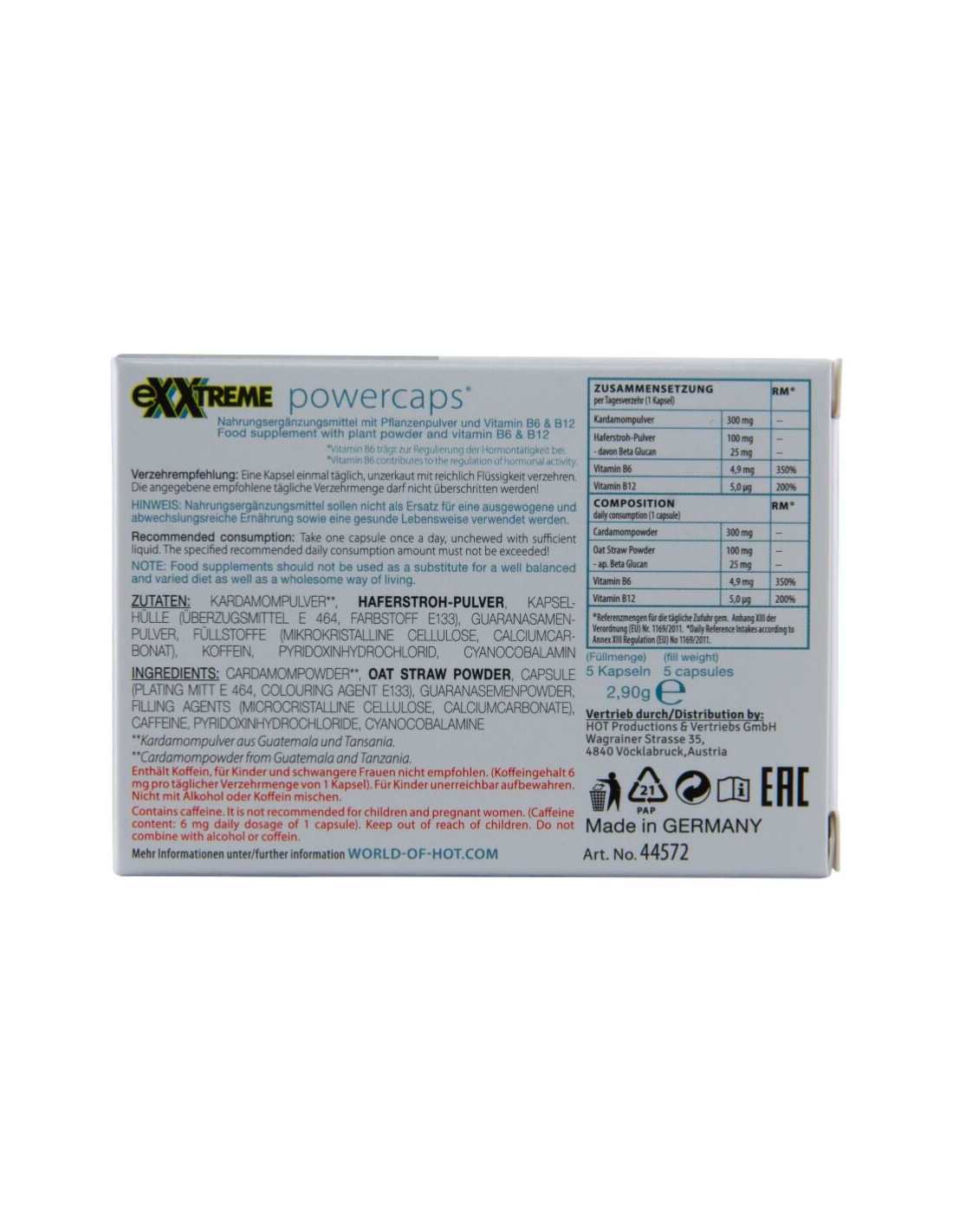 Kardamono milteliai, avižų šiaudų milteliai, kapsulė: (plakiruota E 464, dažiklis E133), guaranos sėklų milteliai, užpildai: (mikrokristalinė celiuliozė, kalcio karbonatas), kofeinas, piridoksino hidrochloridas, cianokobalaminas.