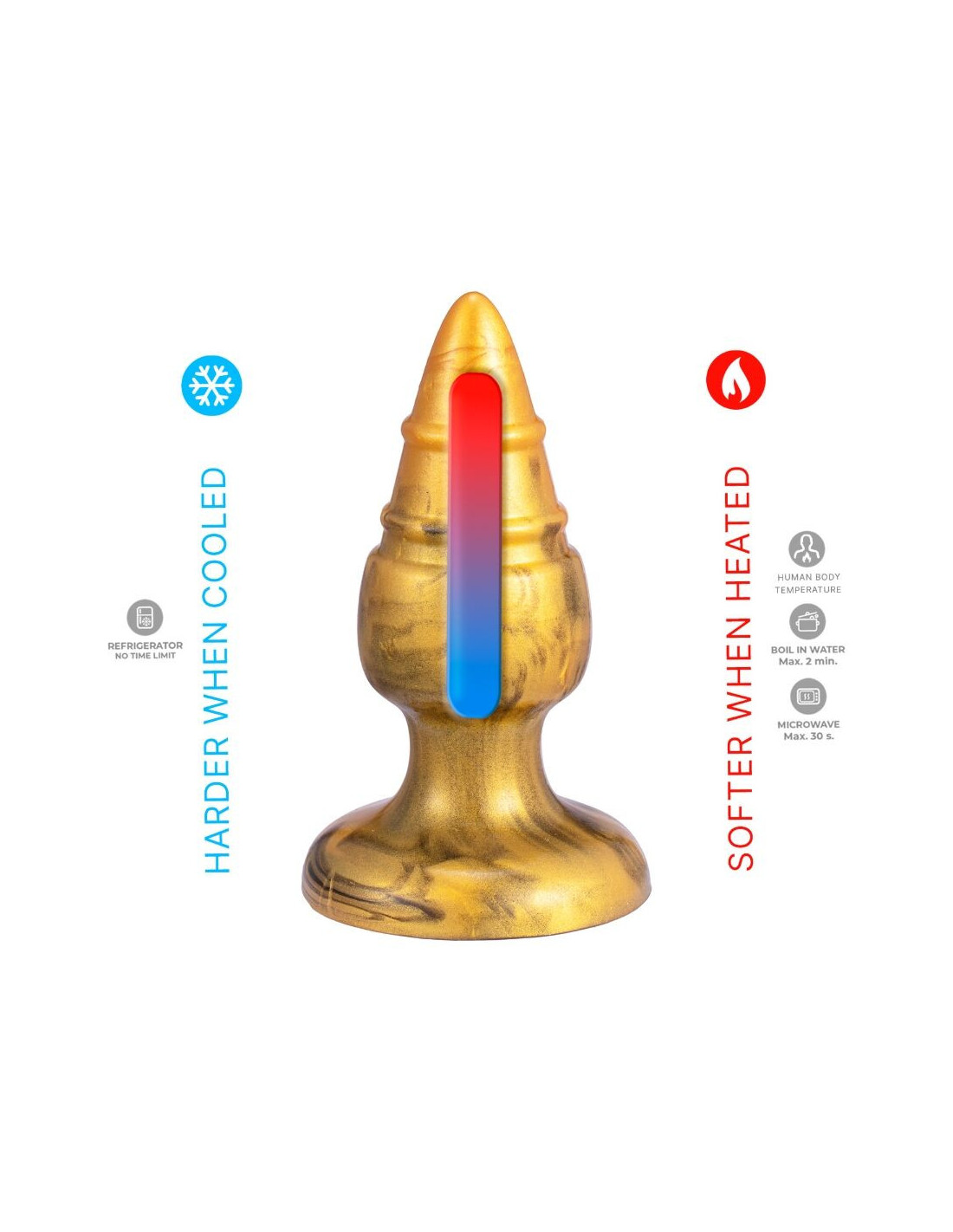 SILEXDAtraskite „Goldy“ – „SILEXD“ „Fantasy“ linijos perlą: jutiminę patirtį, kuri atrodo gimusi iš sapno, bet kurią galite formuoti pagal savo norus. „Goldy“ yra termoreaktyvus, tai reiškia, kad jis reaguoja į jūsų valią: kaitinamas tampa lankstesnis ir apgaubiantis, o atvėsintas – tvirtesnis ir ryškesnis. Jo medžiaga veiksmingai išlaiko temperatūrą, o skysto silikono paviršius suteikia nepaprastai šilkinį, minkštą ir apgaubiantį prisilietimą, tarsi ilgai trunkantį glostymą.