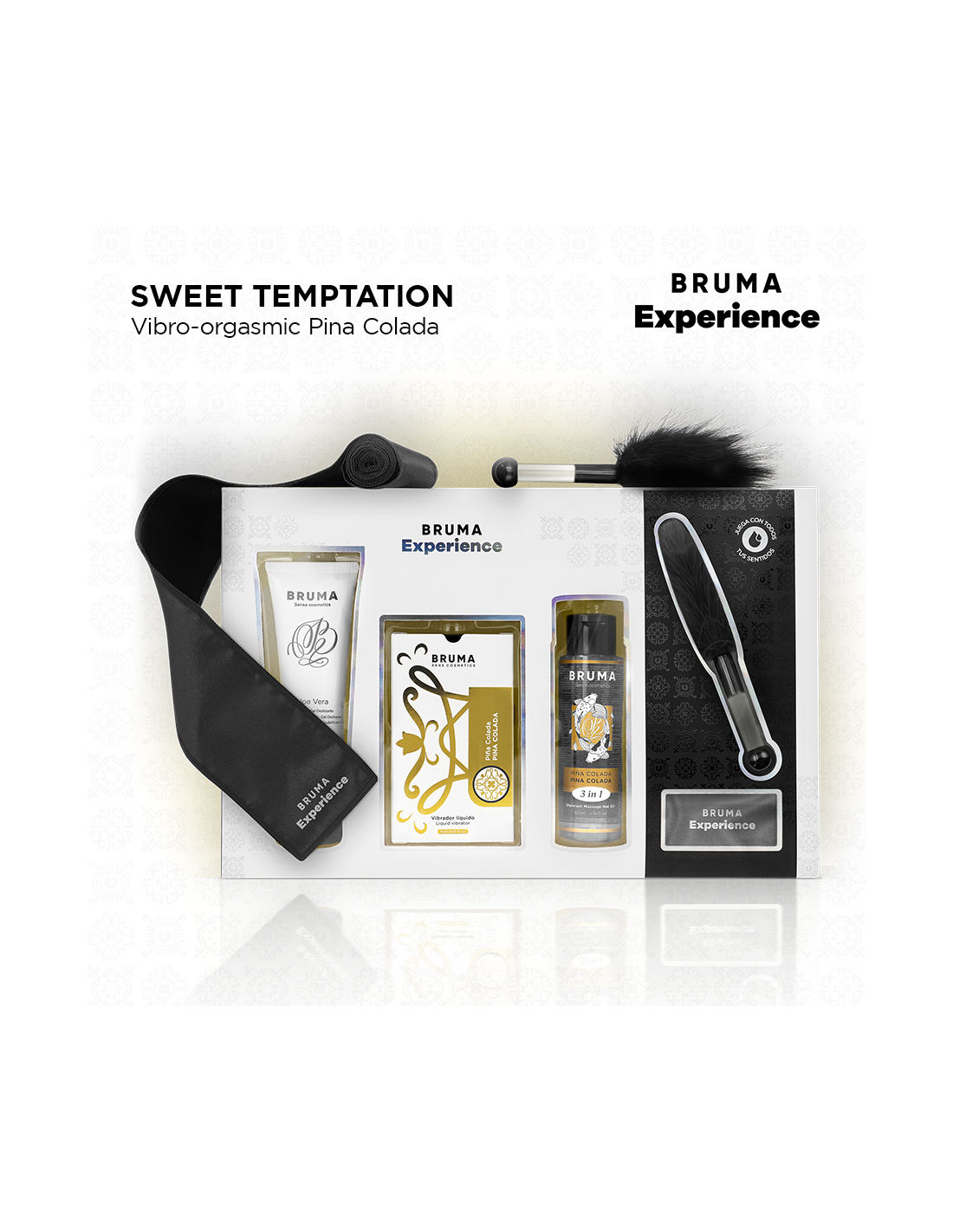 BRUMASaulė, skonis ir ryškus malonumas. Šis rinkinys kviečia jus į Karibų jūros nuotykį su džiuginančiu prisilietimu. Skystas vibratorius sustiprina geismo efektą, o kiti priedai – lubrikantas, aliejus, plunksna ir raištis akims – kviečia atsipalaiduoti. Idealiai tinka poroms, norinčioms nestandartiškai tyrinėti pasaulį su entuziazmu.
