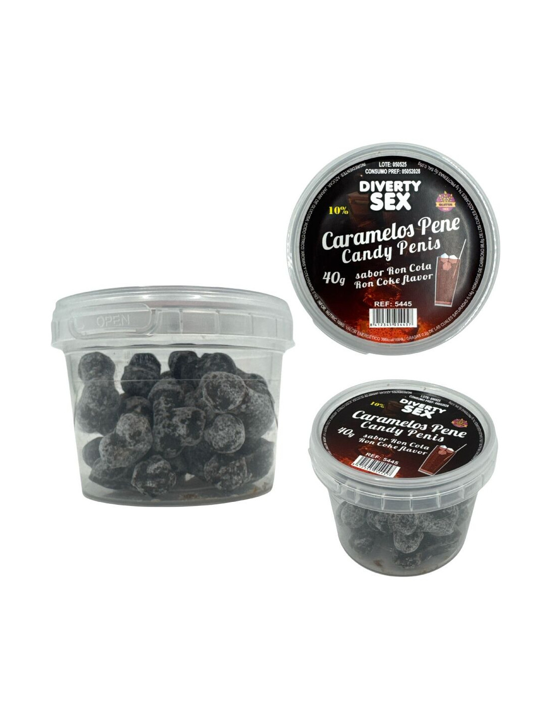 Smagus maišelis su 20 penio formos saldainių su gardžiu romo ir kolos skoniu. Originalus ir aštrus pasirinkimas pagyvinti bernvakarius / mergvakarius, suaugusiųjų vakarėlius arba kaip humoristinė dovana.