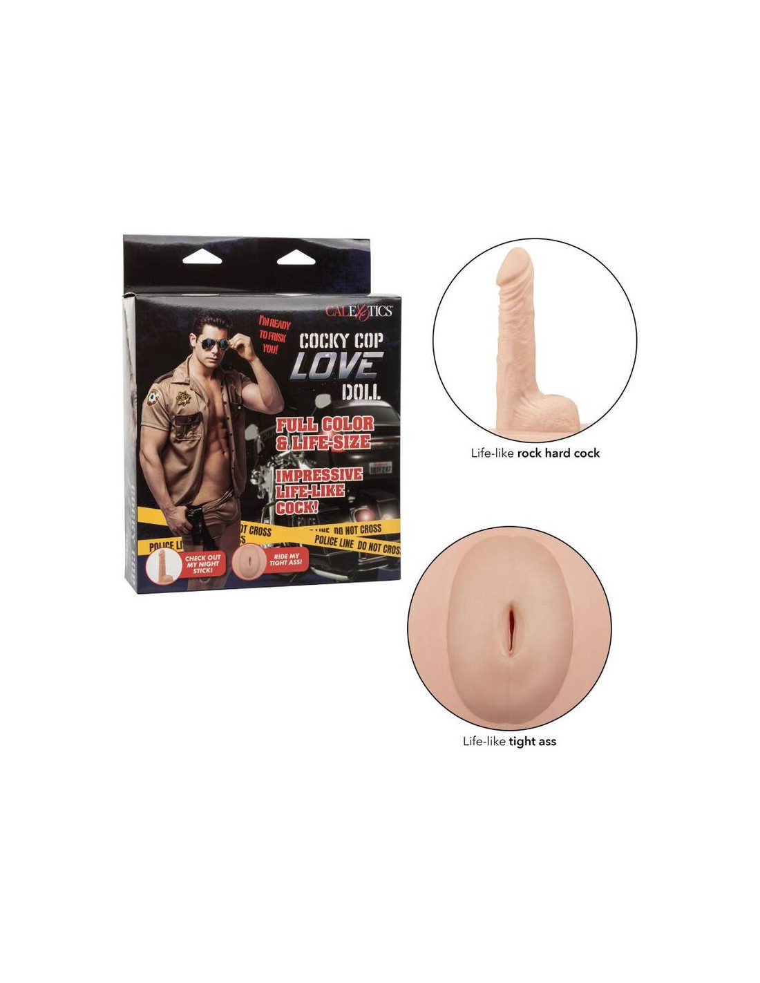 „Cocky Cop“ meilės lėlė pasiruošusi užrakinti ir užpildyti jūsų malonumą. Jaudinanti vyriška sekso lėlė pasižymi tikrovišku pripučiamu dizainu, 2 išdykusiomis meilės skylutėmis ir uolai kietu peniu, kuris visada pasiruošęs pasimatymui. Ankštos meilės skylutės tikrai sukurs malonumo stebuklų šalį bet kuriam nariui, norinčiam į jas įslysti. Kietas kaip uola penis turi tikrovišką raibuliuojančią tekstūrą, kad pasimatymas virpėtų. Viso kūno dizainas puikiai tinka visiems, norintiems šiek tiek daugiau iš savo malonumo žaidimų.
