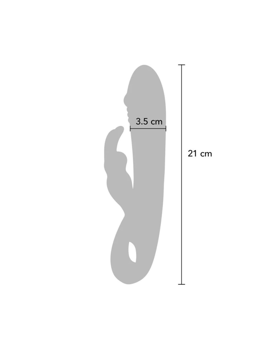 - Produkto matmenys: Iš viso: 21 x 7 cm | Velenas: 14 x 3,5 cm | Stimuliatorius: 7,5 x 2 cm