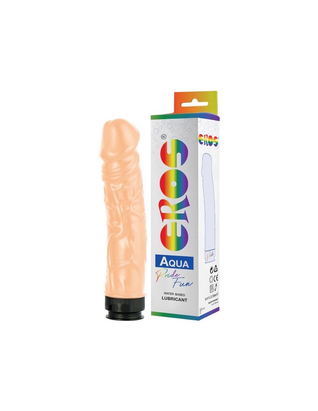 Tai du viename! Šis standus, tikroviškas dildas, be visų prabangių detalių, viduje talpina 300 ml vandens pagrindo lubrikanto „Eros Aquaglide“. Viskas, ko jums reikia, yra po ranka.