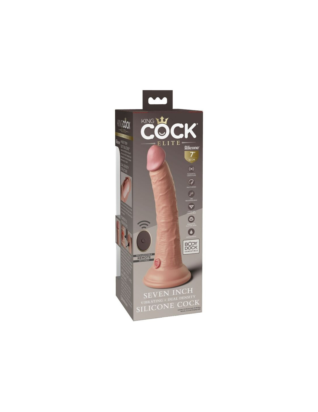 Tvirtas siurbtukas sukurtas siekiant geresnio našumo, suteikiant daugiau universalumo ir patogumo naudojimo metu. Siurbtukas taip pat leidžia šiam „King Cock Elite“ dvigubo tankio silikoniniam dildo būti suderinamam su „Body Dock“ ir diržais, jei pageidaujama.