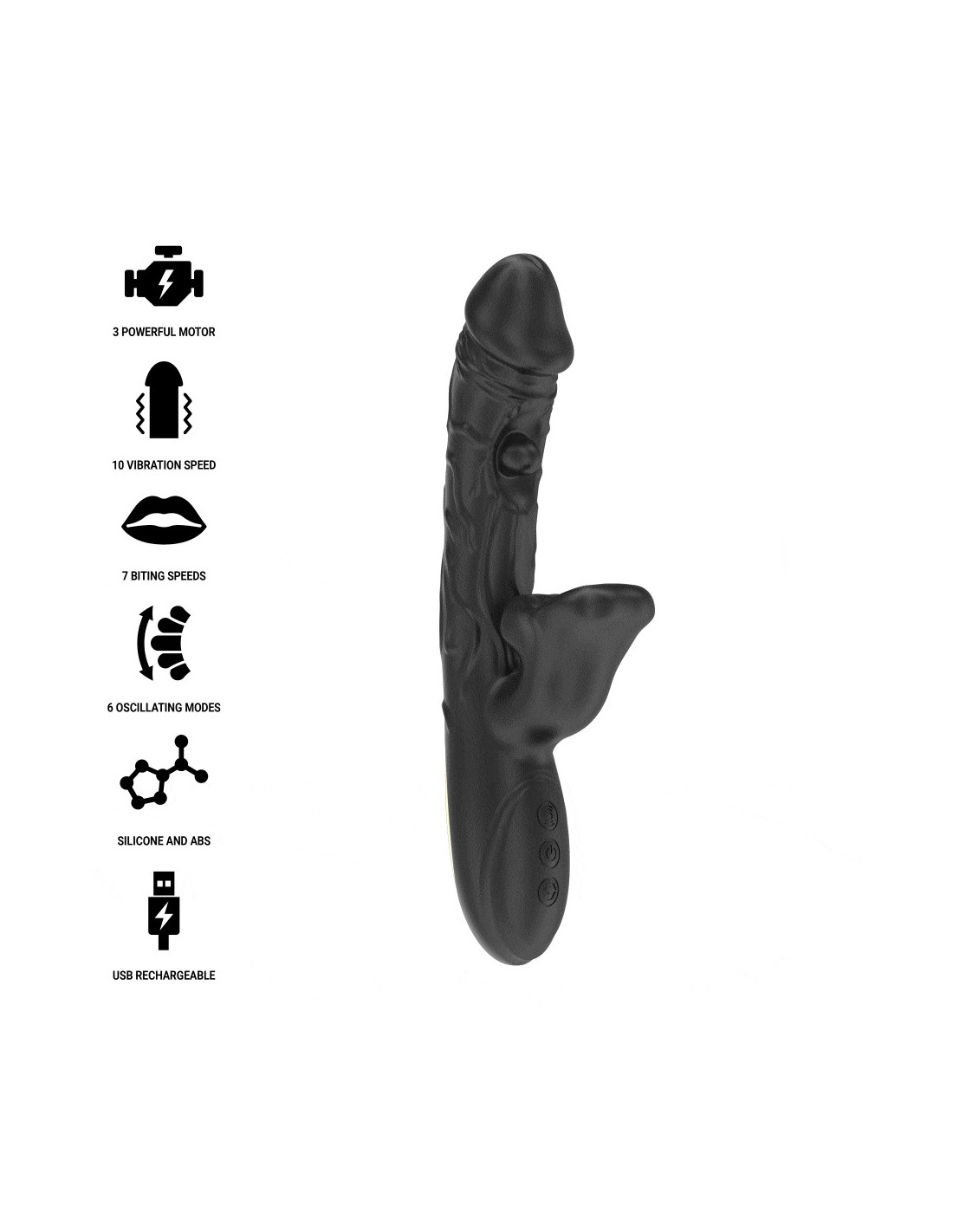- 7 kandžiojimo režimai : viena iš inovatyviausių šio vibratoriaus savybių yra kandžiojimo efektas – 7 kandžiojimo režimai imituoja čiulpimo ir spaudimo pojūtį klitorio srityje. Šie režimai suteikia unikalią stimuliaciją, panašią į lengvą kandžiojimąsi, pakeldami malonumo patirtį į realesnį ir jaudinantį lygį.