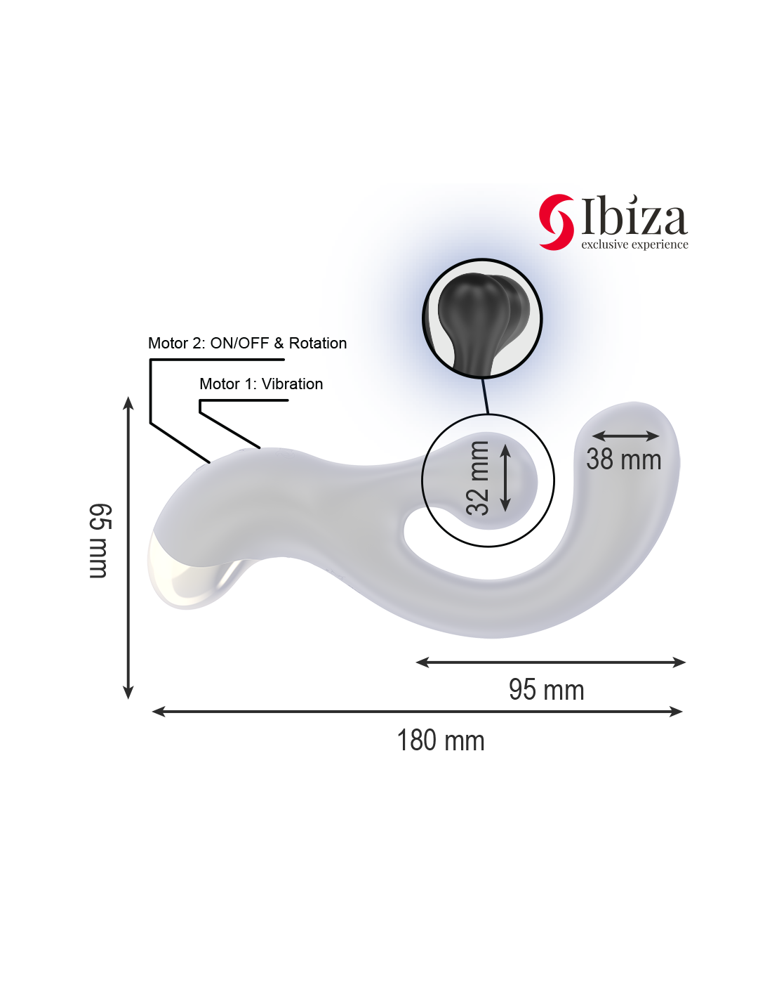 Fabricado en silicon premium y ABS, materiales seguros para el cuerpo y con una textura suave y aterciopelada, este juguete se adapta perfectamente a tu anatomía. Su 180 mm de largo total y 95 mm de zona įterpiama, es ideal para quienes buscan estimulación interna sin renunciar al confort y la elegancia. Resistente al agua y equipado con carga magnetica USB, el Estimulador IBIZA está siempre listo para llevarte al siguiente nivel de placer, sin límites.