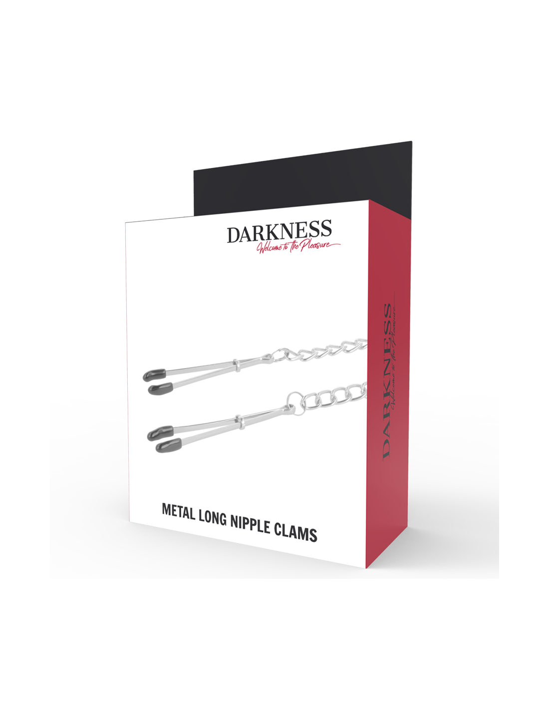 Šie grandinėlės formos spenelių laikikliai iš „Darkness“! Jie yra unisex ir labai lengvai naudojami. Laikikliai ir grandinėlė pagaminti iš nerūdijančio plieno ir aliuminio. Juose nėra nikelio. Spenelių laikiklius galite naudoti savo išdykusioms paslaptims arba kaip stimuliuojantį aksesuarą, kai mylitės su mylimuoju.