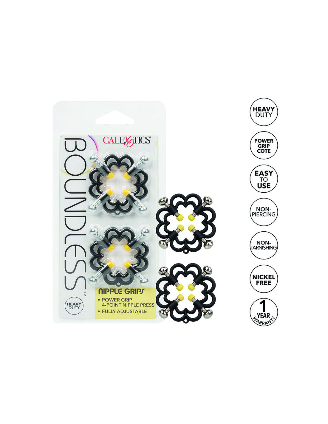 Pakelkite pojūčius į aukštesnį lygį ir mėgaukitės begalinėmis malonumo galimybėmis su „Boundless“ spenelių spaustukais. Daugiafunkciai spaustukai sukurti tam, kad patirtų nepakartojamą pojūtį su 4 taškų varžtais pritvirtinta konstrukcija ir tvirtu fiksatoriumi. Raskite tai, kas pataiko į reikiamą vietą, naudodami visiškai reguliuojamus 4 taškų sraigtinius spaustukus, o tvirti galiukai lieka vietoje, kad pajustumėte visą gyvenimą trunkantį jaudulį. Pritvirtinkite erzinančius spaustukus prie spenelio ar bet kurios kitos kūno dalies ir mėgaukitės kiekvienu skausmo ir malonumo banga su kiekvienu truktelėjimu. Erzinimo spaustukas turi 4 visiškai reguliuojamus įtempimo taškus, kad stimuliuotų bet kurią kūno dalį. Įtempimui didėjant, dilgčiojimas sustiprėja su kiekvienu varžto pasukimu, todėl tai yra geriausi spenelių stimuliavimo žaisliukai. Šie lengvai naudojami spenelių erzintuvai puikiai tinka visiems.